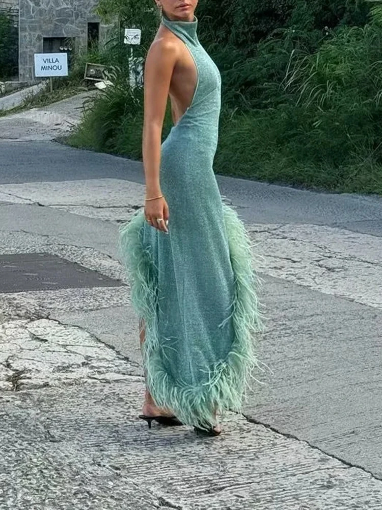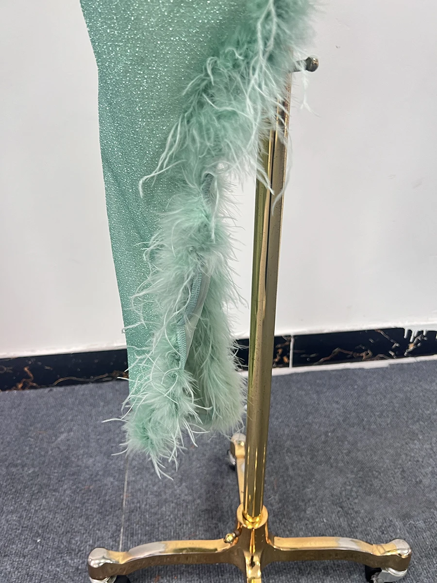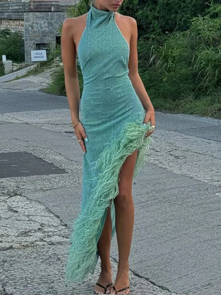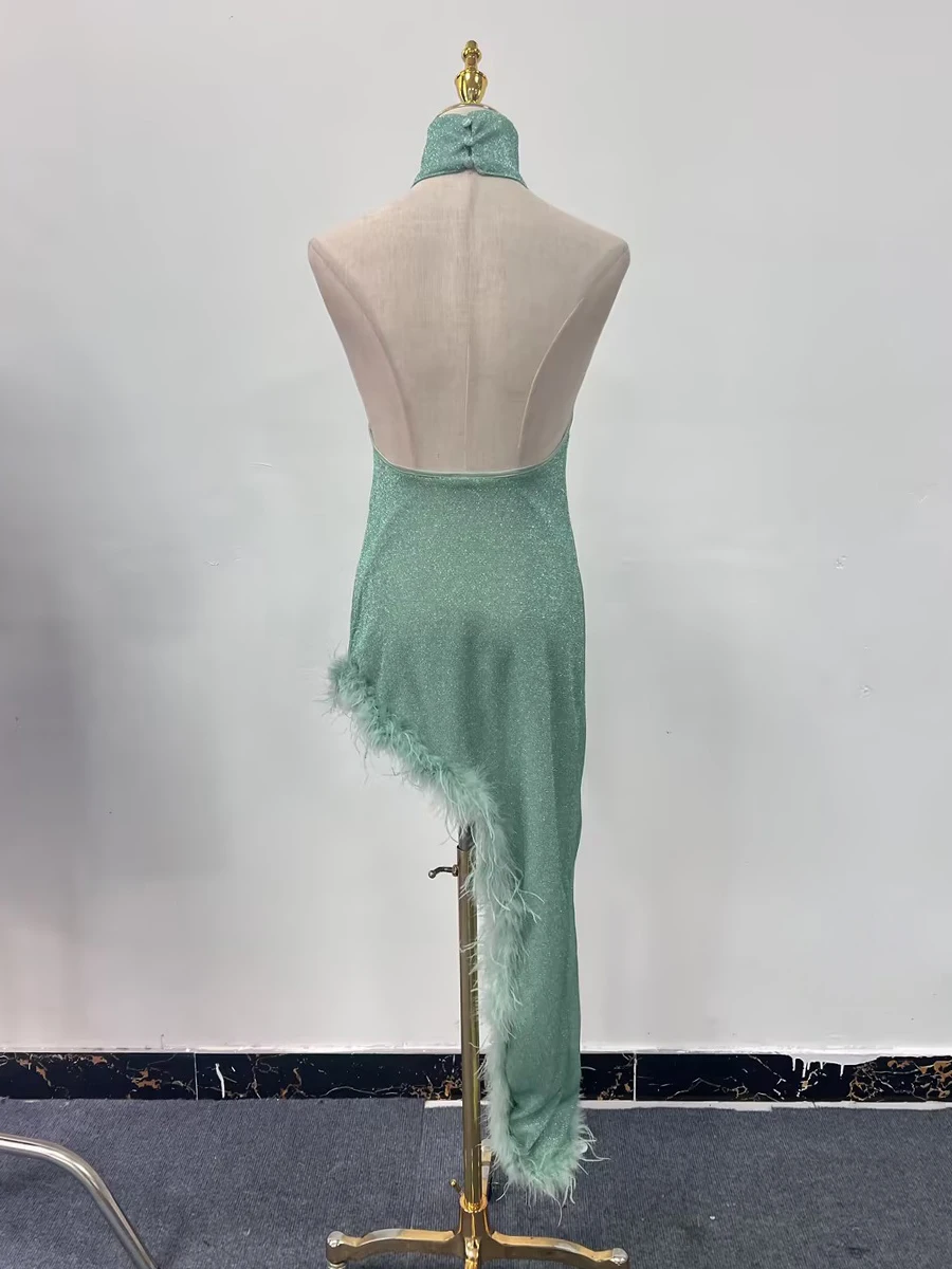 Be the first to review “TWOTWINSTYLE Solid Slim Backless Dresses For Women Round Neck Sleeveless High Waist Spliced Feather Irregular Dress Female New” Cancel reply