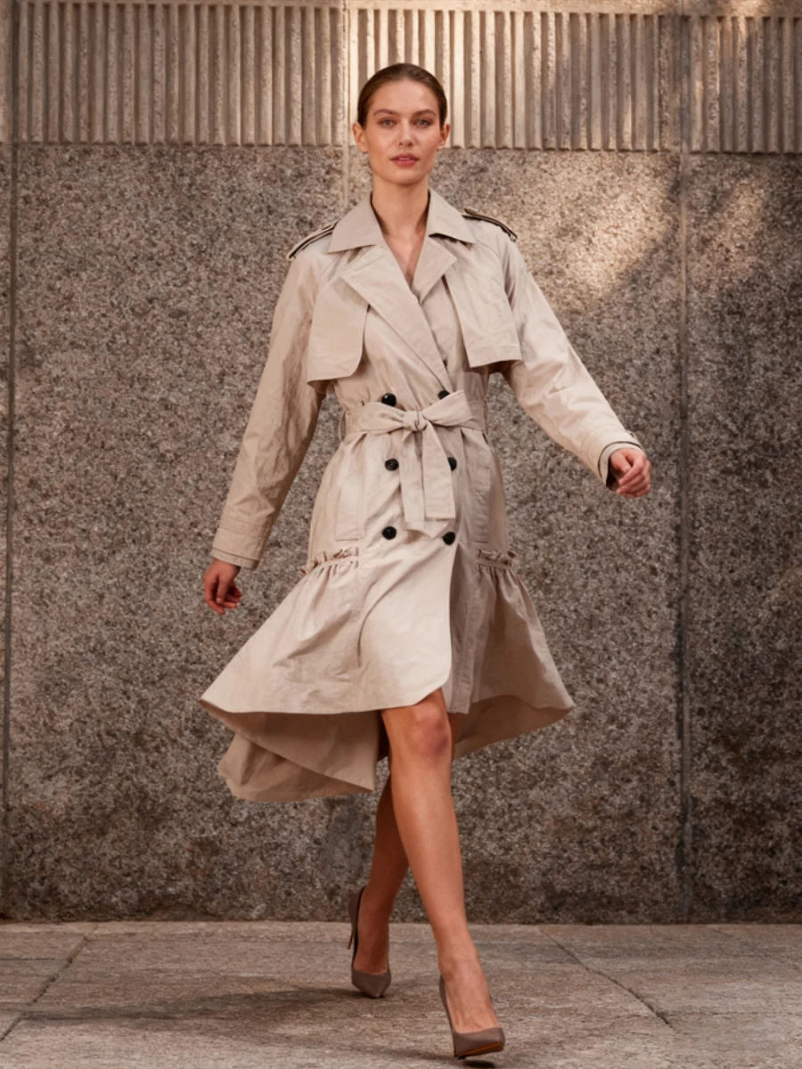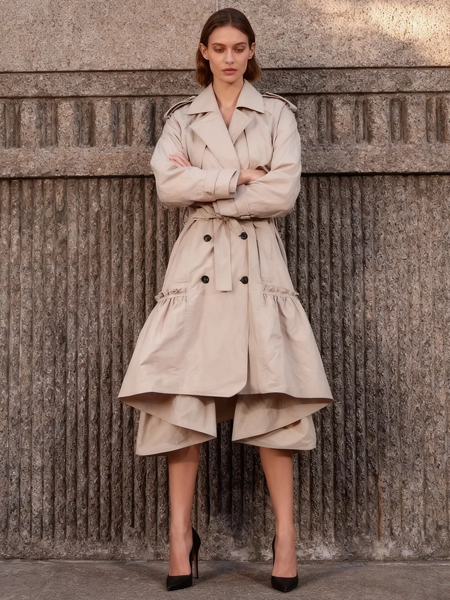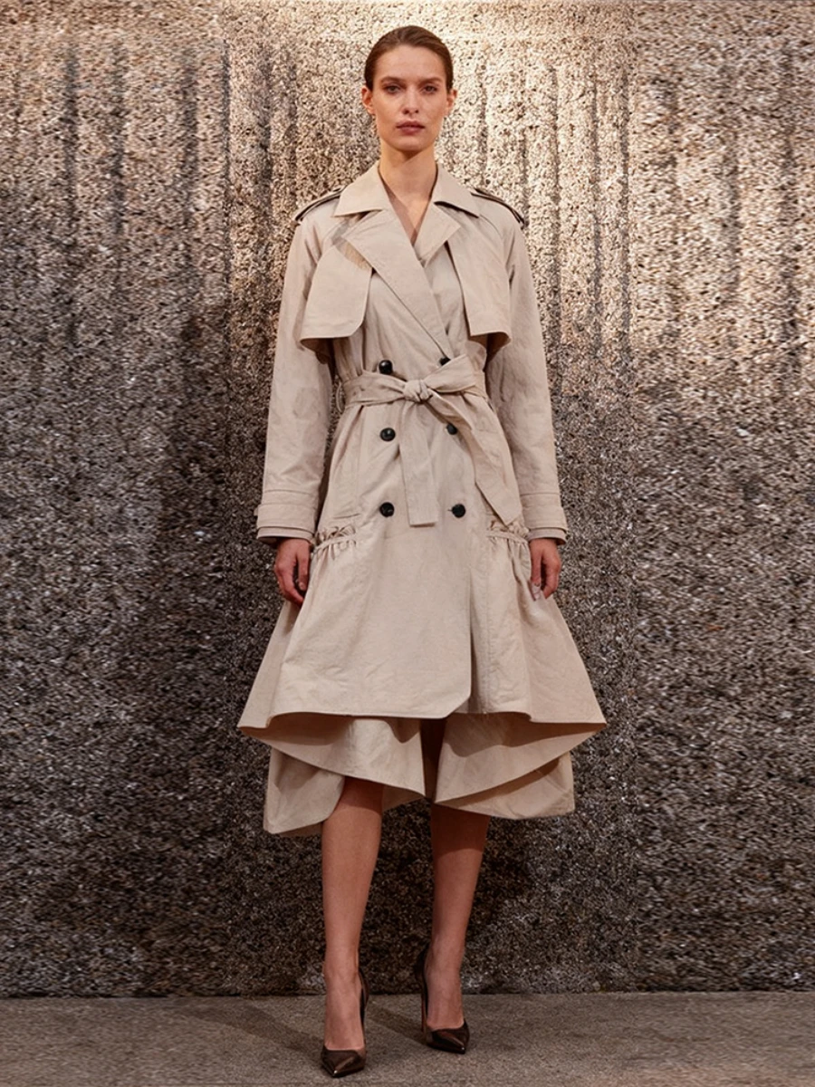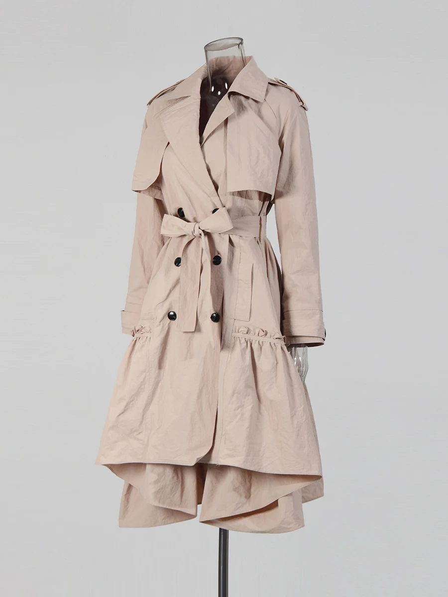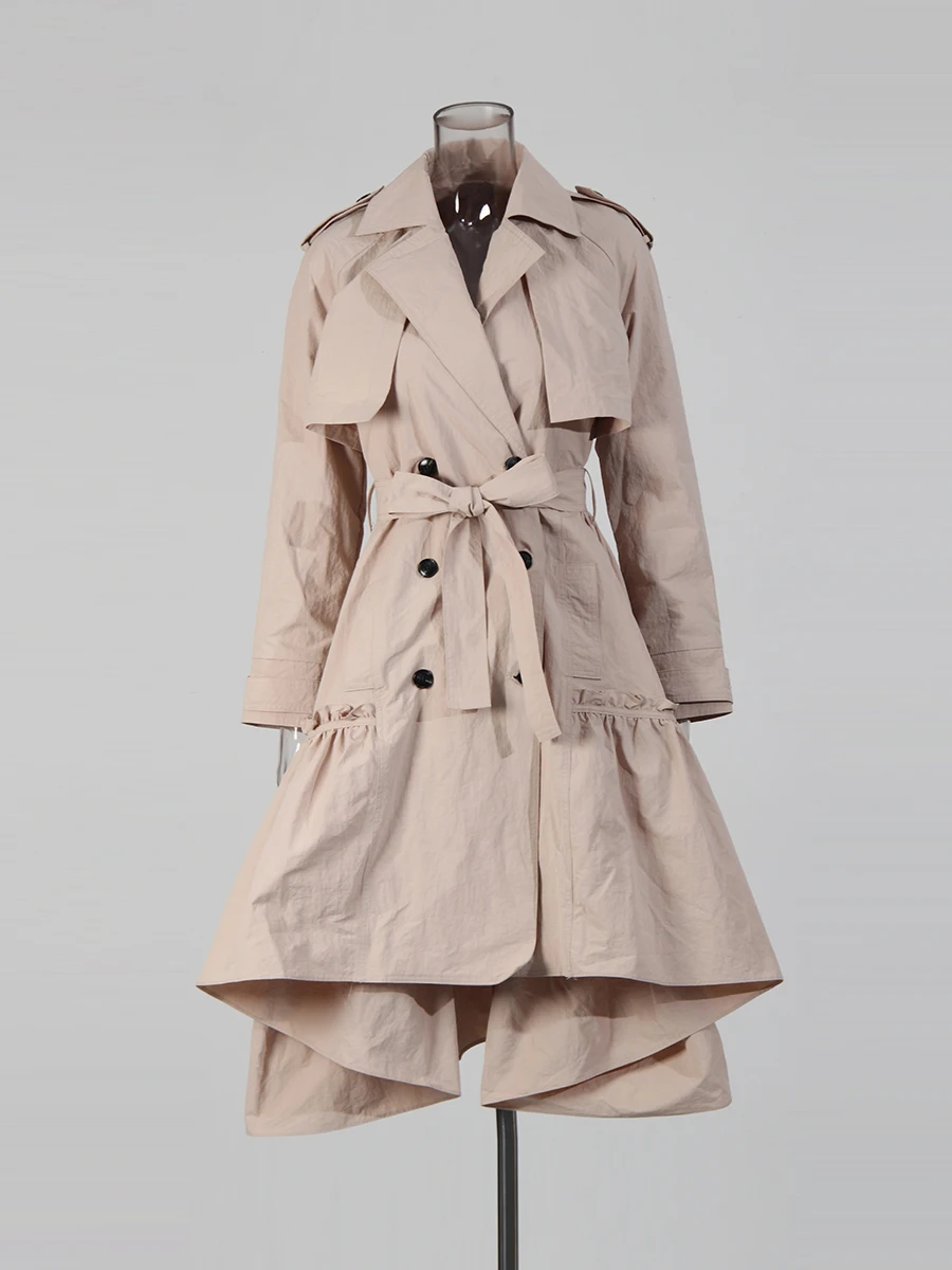 TWOTWINSTYLE Solid Slimming Spliced Lace Up Fashion Trenchs for Women Lapel Long Sleeves Patchwork Ruffles Folds Trench Female