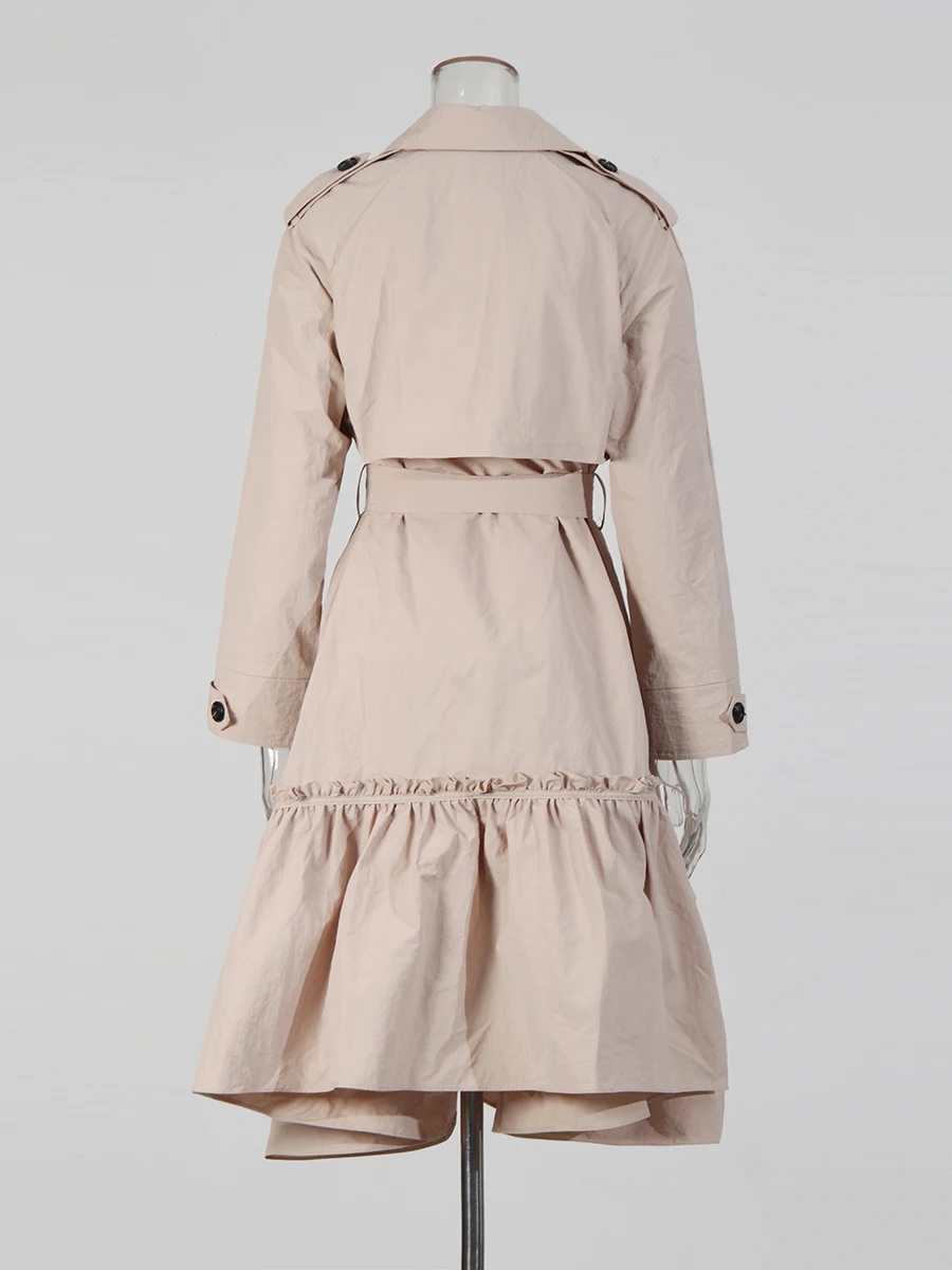 TWOTWINSTYLE Solid Slimming Spliced Lace Up Fashion Trenchs for Women Lapel Long Sleeves Patchwork Ruffles Folds Trench Female