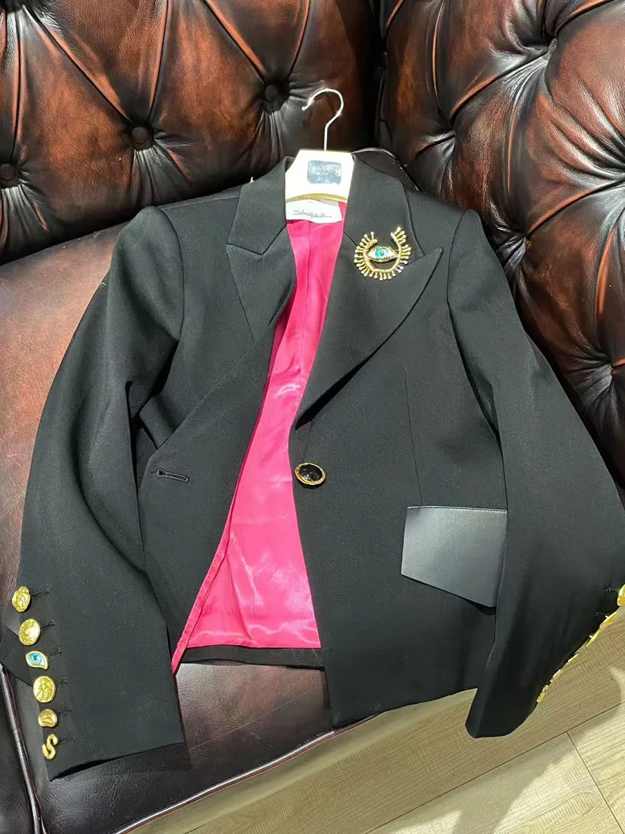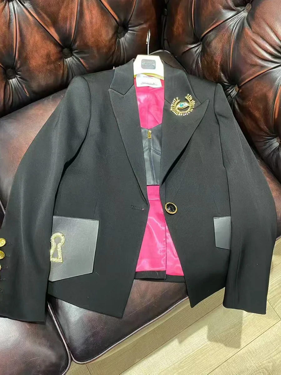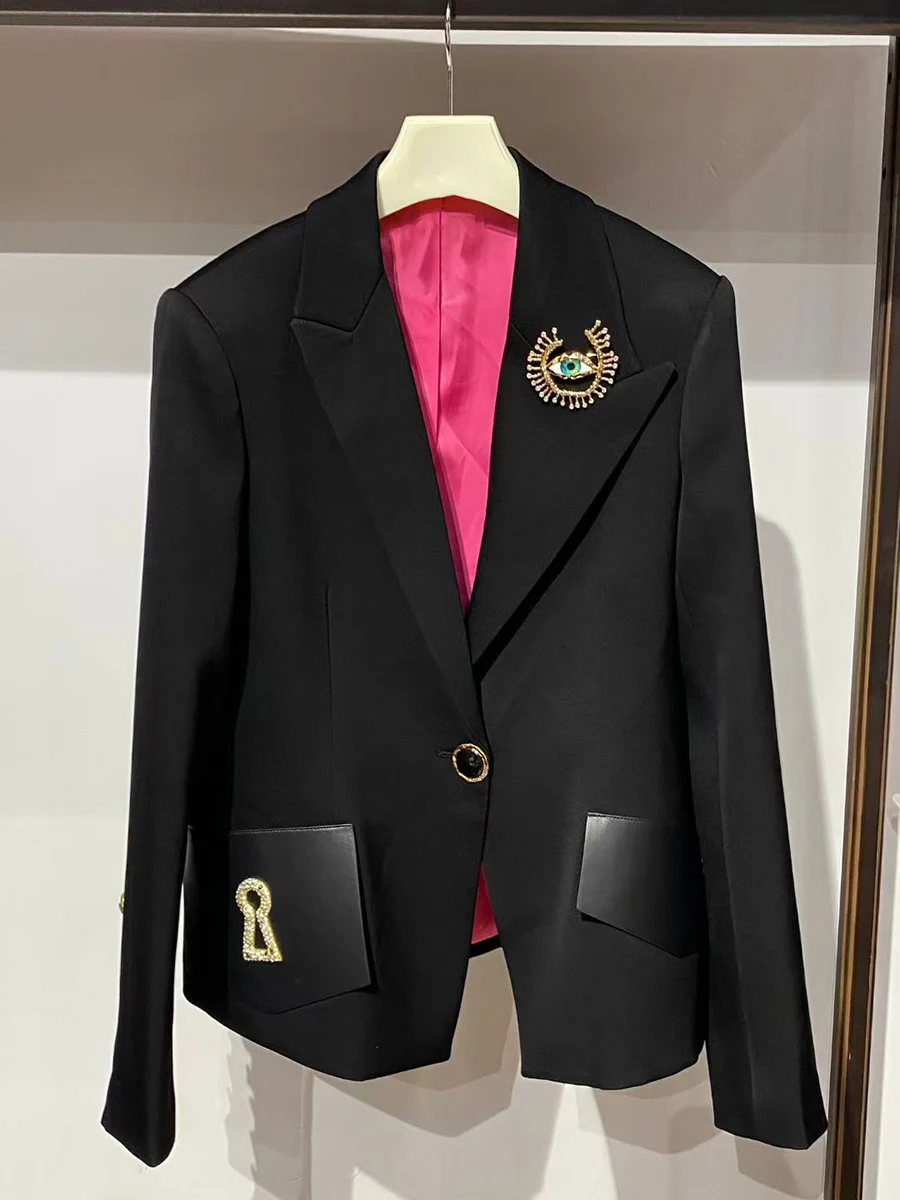 TWOTWINSTYLE Solid Spliced Bead Sequined Fashion Blazers for Women Lapel Long Sleeves Patchwork Button Blazer Female Fashion New