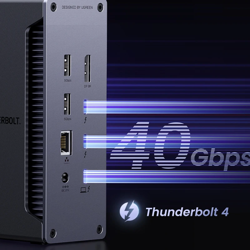Powerful Thunderbolt 4: With one upstream and two downstream Thunderbolt 4 ports, you can transfer data at speeds up to 40Gbps and display in resolutions up to 8K. Experience high-performance work like never before.