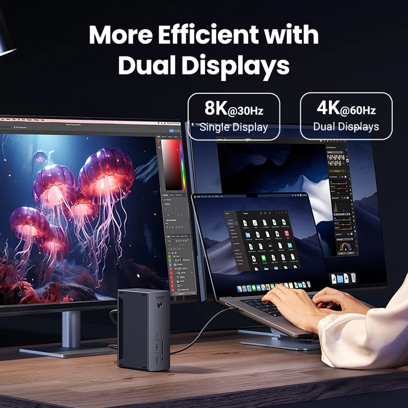 UGREEN Thunderbolt 4 Dock with EU Adapter 13-in-1 40Gbps Docking Station Dual 4K60Hz Single 8K30Hz 2.5G Ethernet for Laptop Mac