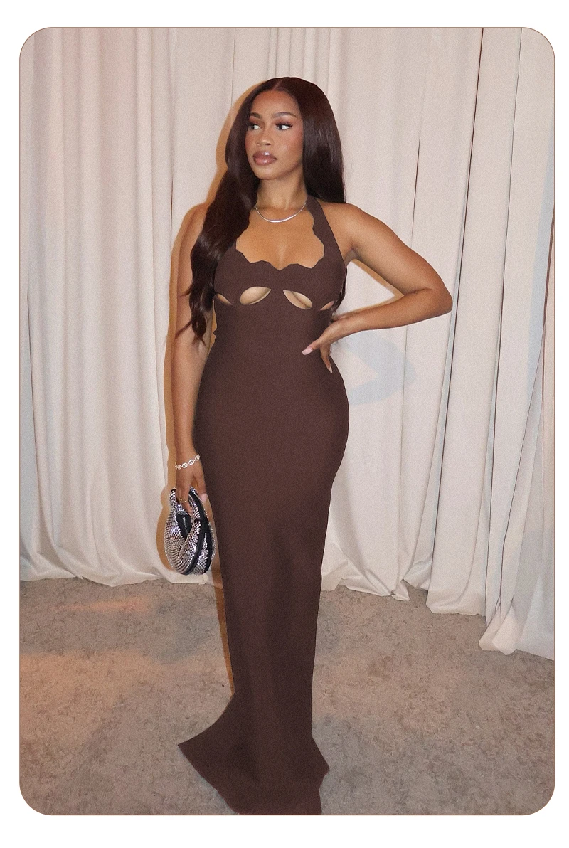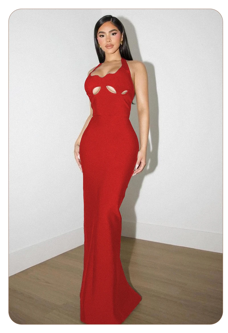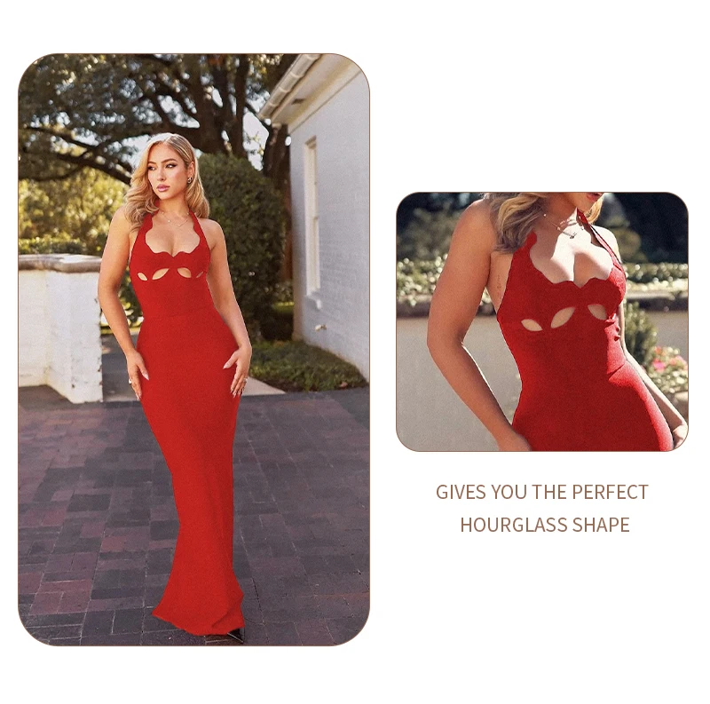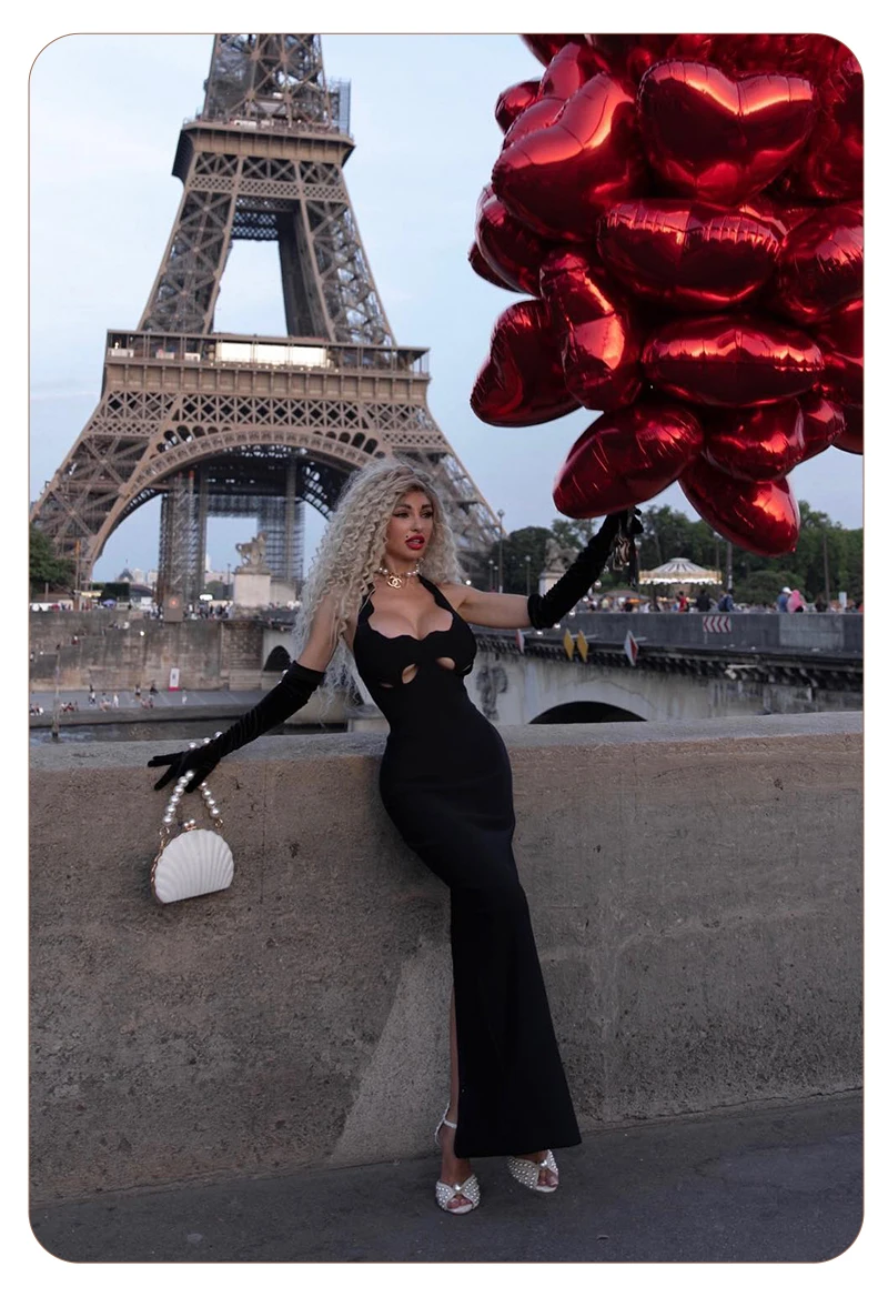 VC Black Halter Elegant Dress For Women 2022 New Summer Evening Party Celebrity Bodycon Long Dress Vestido