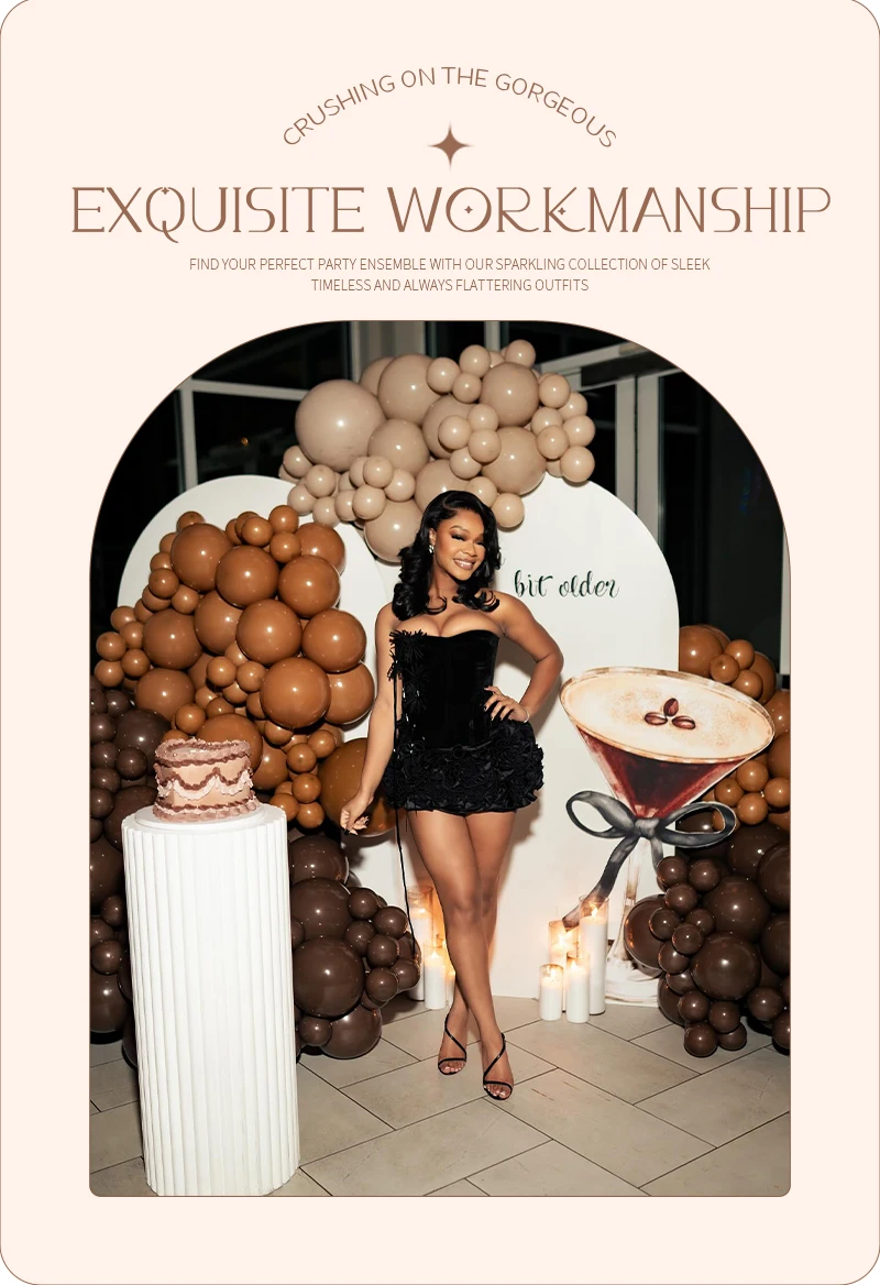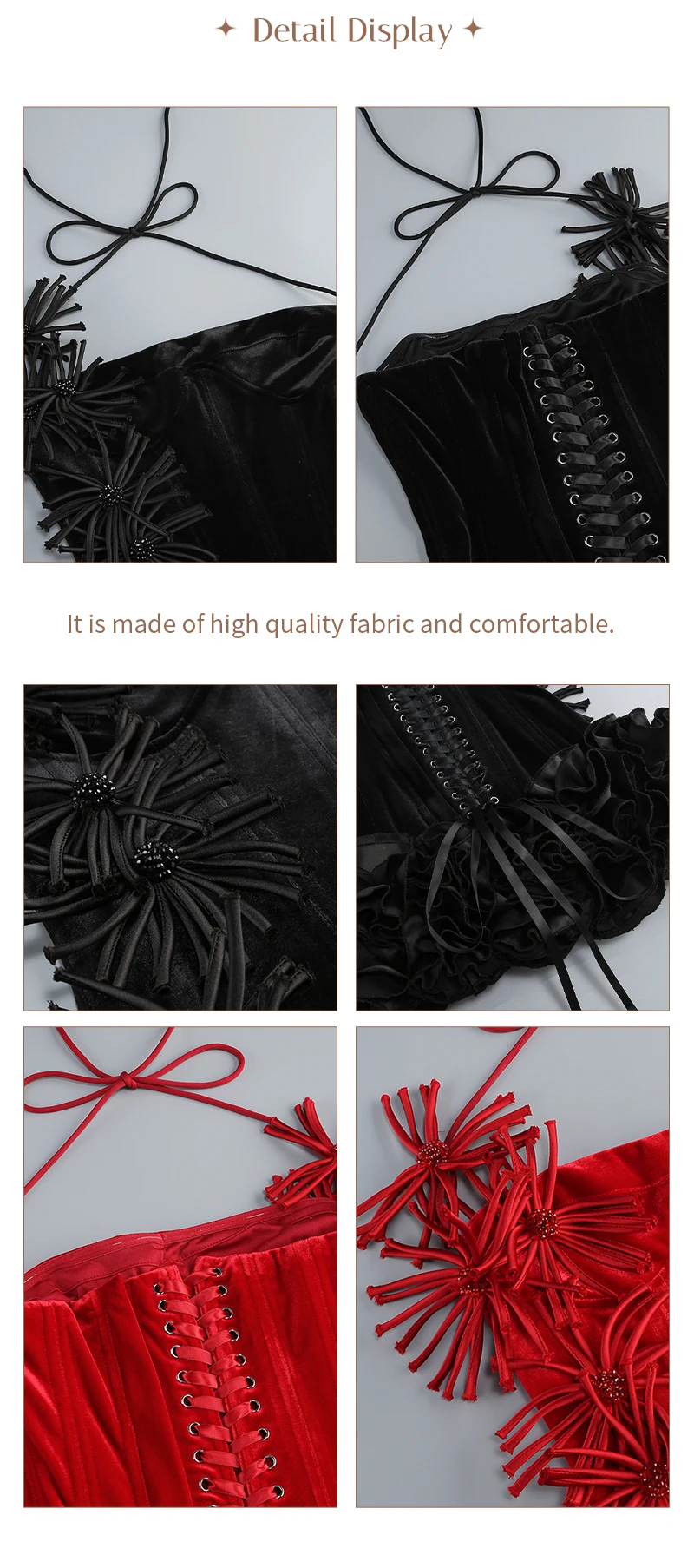 Step out for a special night out in this chic black halter – style corset mini dress. The halter design showcases your shoulders, and the corset bodice flatters your figure. The eye – catching floral – like embellishments provide a unique, fashionable touch. Whether it’s a club night or a trendy party, this dress will have you looking effortlessly cool and confident. Available in different sizes.