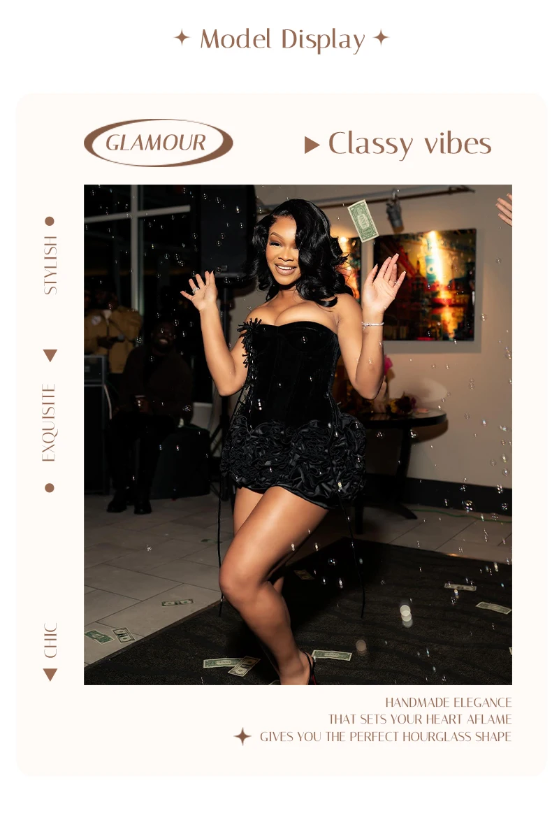 VC Chic Halter Sleeveless Style Corset Mini Dress with Unique Embellishments for a Special Night Out Evening Gown