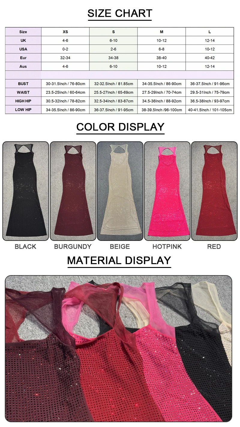 Be the first to review “VC Multi Colours Shiny Rhinestones Mesh Patchwork Long Dress For Women Backless Slim Bodycon Evening Party Cocktail Gowns” Cancel reply
