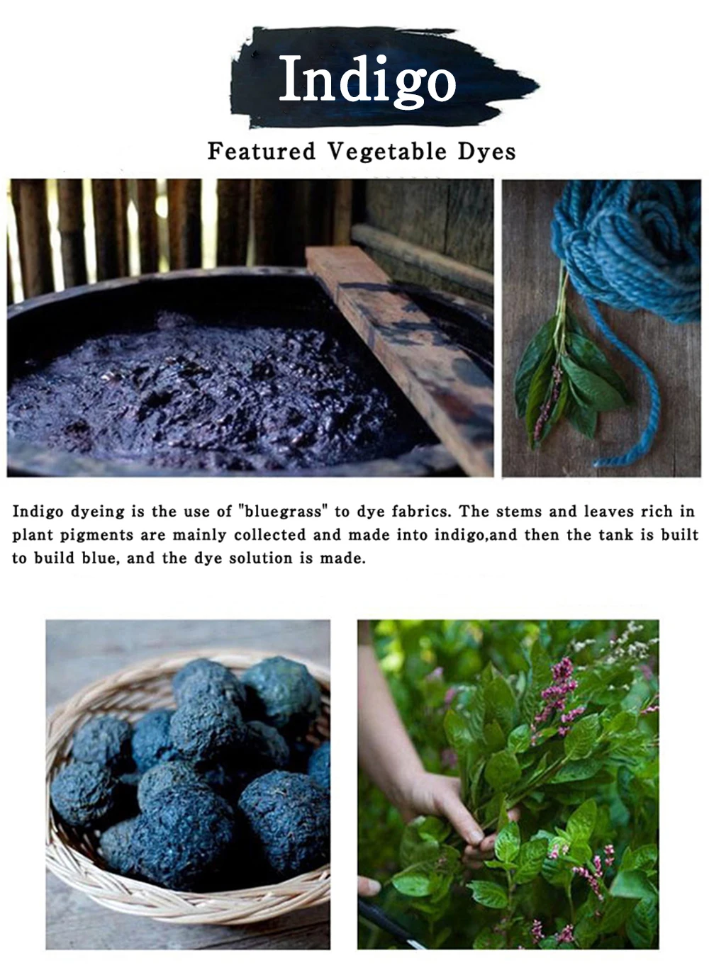 Dyeing process: plant blue dyeing + ink dyeing