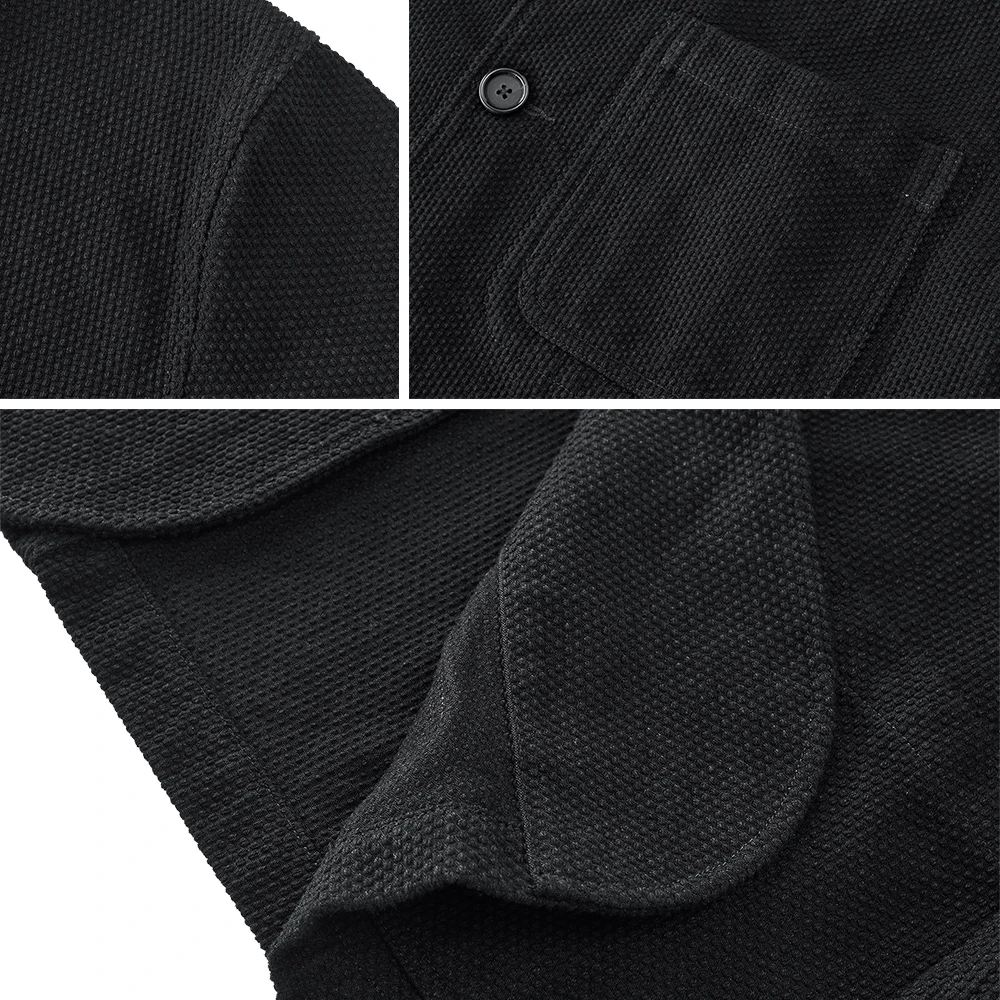 Design highlights: This suit jacket is made of brand-new fabrics, and ink dyeing is added after plant dyeing to obtain a deeper color (closer to black) than indigo dyeing, such as ink.