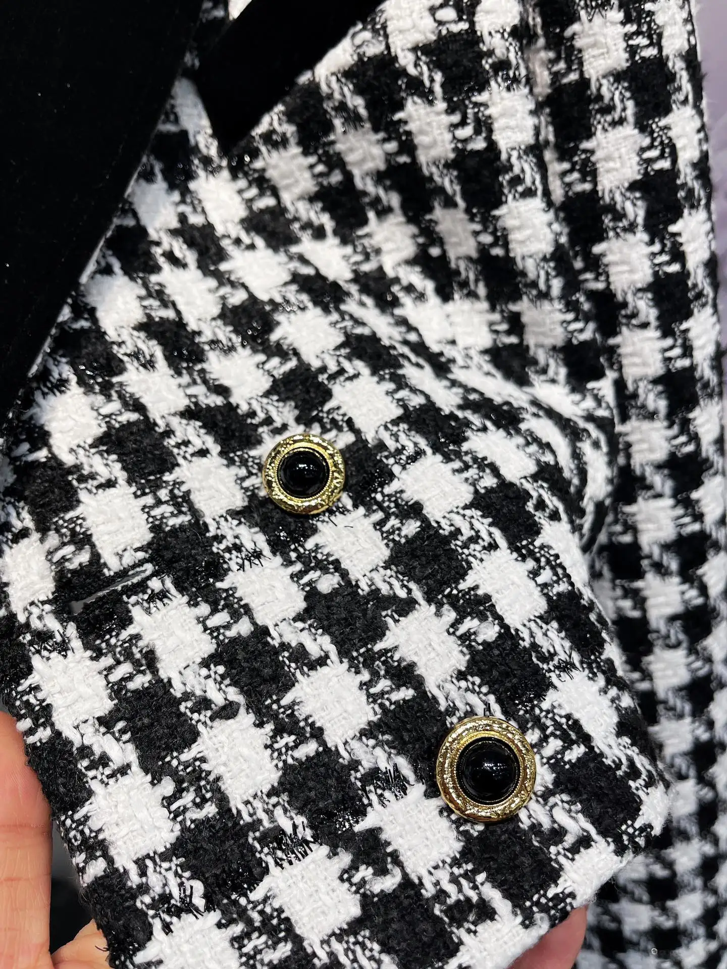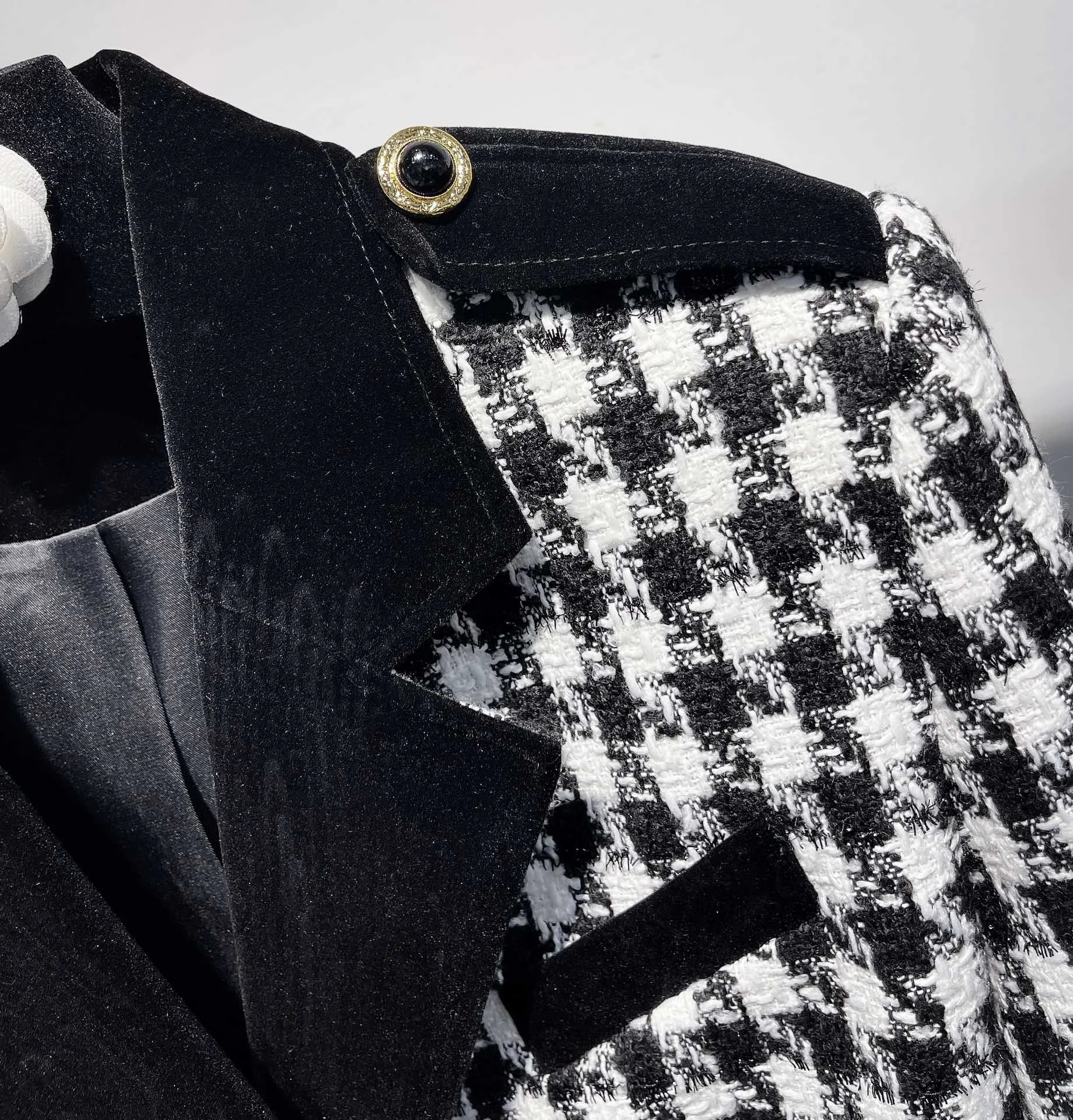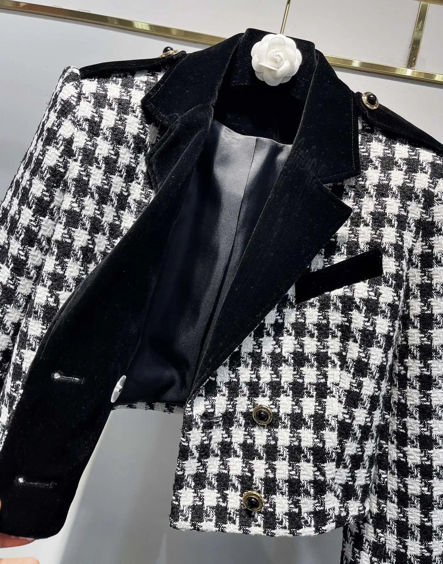 Vintage plaid patchwork contrasting velvet women’s short suit jacket classic casual party elegant autumn new women’s jacket