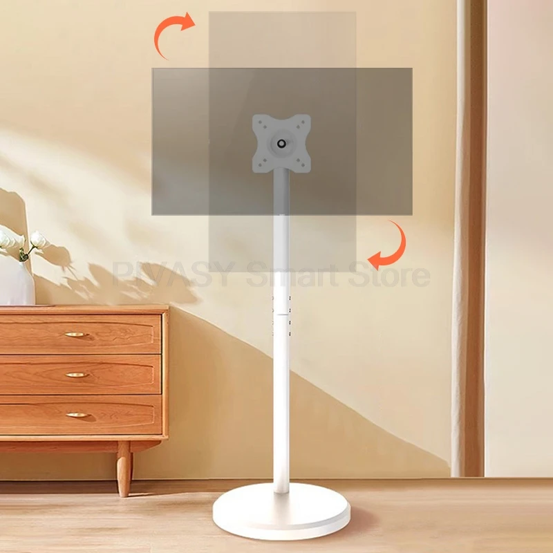 White Floor-standing Art Display Rack Adjustable Height TV Stand Mobile Monitor Holder 360° Rotating for 10 – 46 Inches Screen