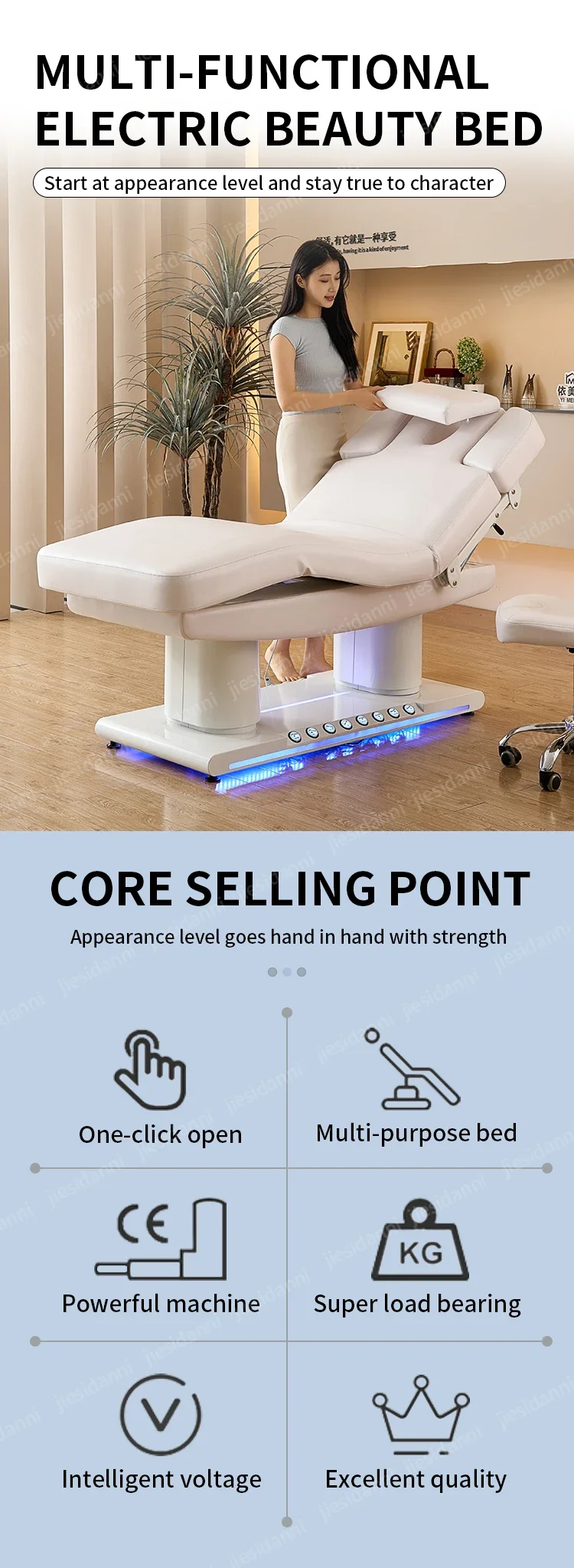 White Gold Comfortable Massage Bed for Beauty Salon Electric Facial Spa Lash New Design Cosmetic Bed