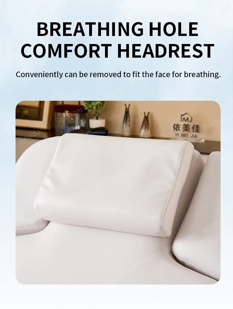 The New Design Comfortable Massage Bed is not just a piece of furniture; it’s an investment in your client’s comfort and satisfaction.The bed’s electric cosmetic feature allows for seamless adjustments, ensuring that your clients can lie down in the perfect position for any treatment.Whether it’s a relaxing facial or a precise lash extension, this bed’s versatility shines through.The plush foam padding provides a cushioned surface that cradles the body, reducing pressure points and enhancing the overall treatment experience.