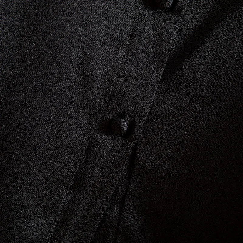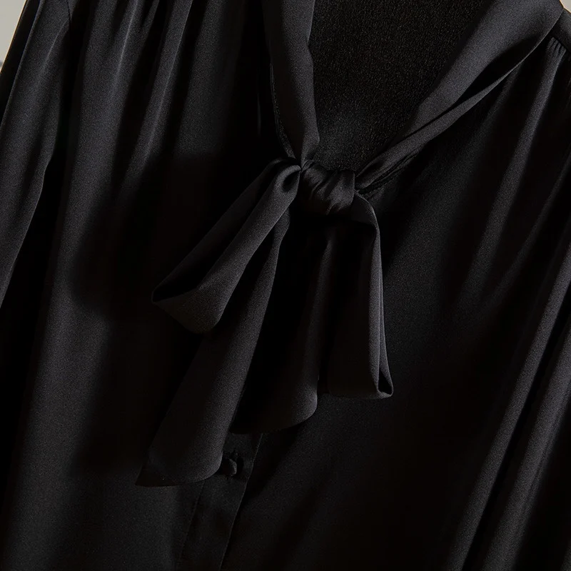 Winsleter- 93% Silk Elegant Shirt For Women, Long Sleeve Lace-up, French Temperament Party Black Blouse, 2025 Spring T4D616CC