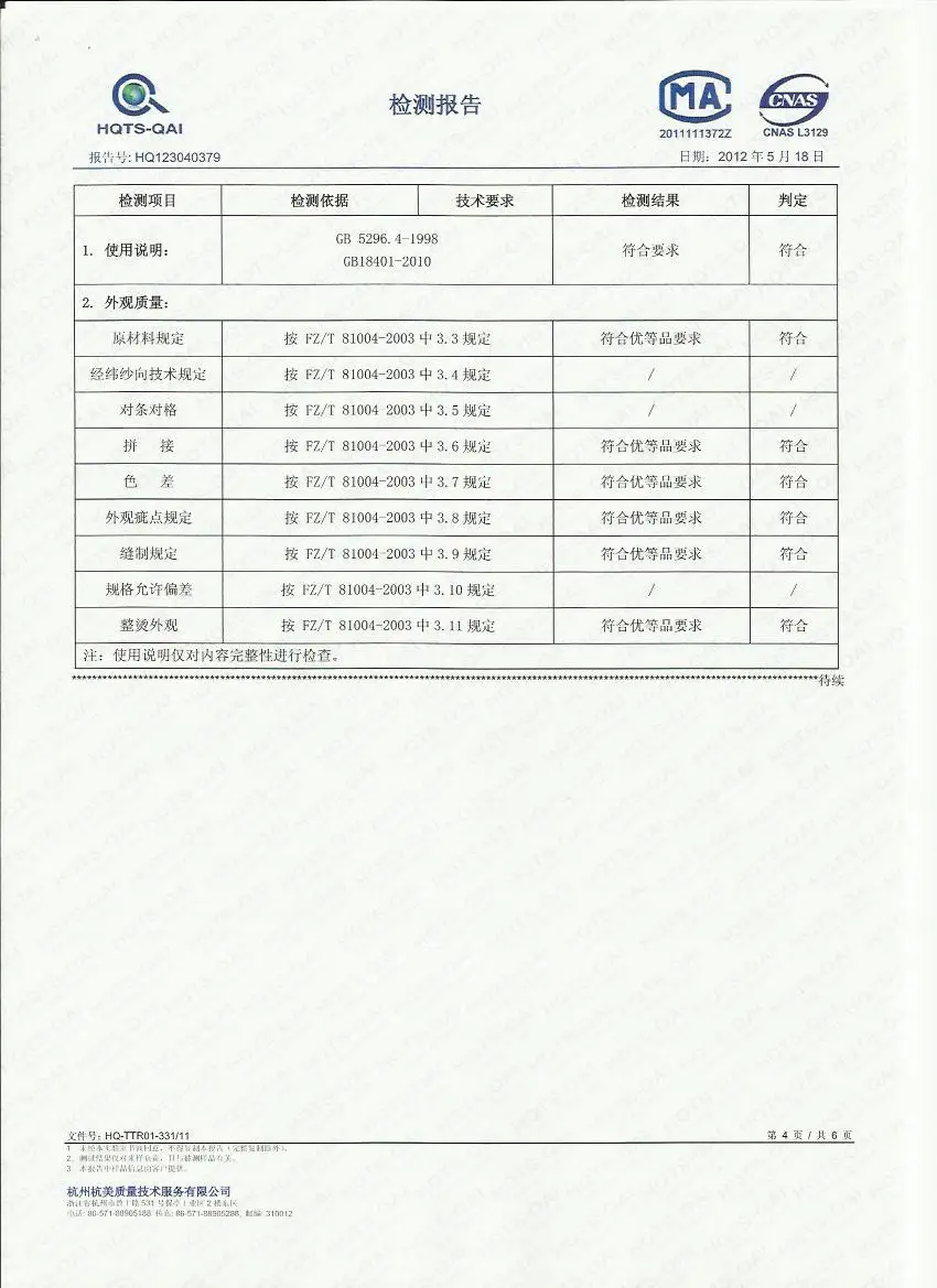 • Fabric content: 91% (inclusive) – 95% (inclusive)