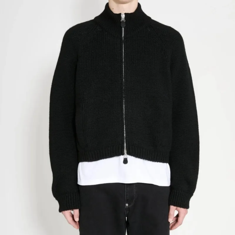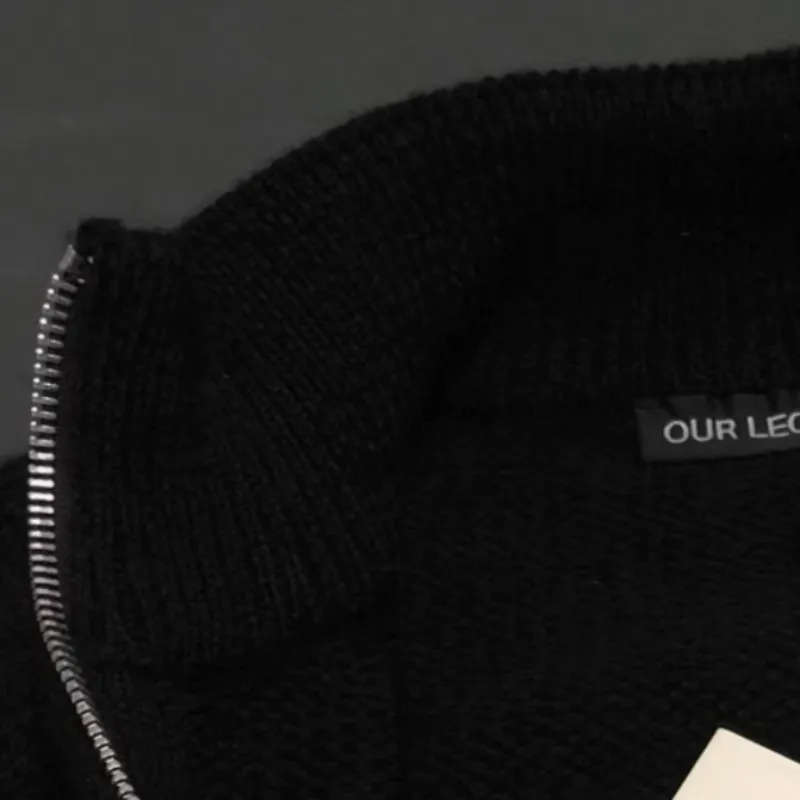 Winter Fashion Street Blank Black OUR LEGACY Sweater Minimalist Stand Collar Two-Way Zipper Cardigan Knitted Jacket Men Women