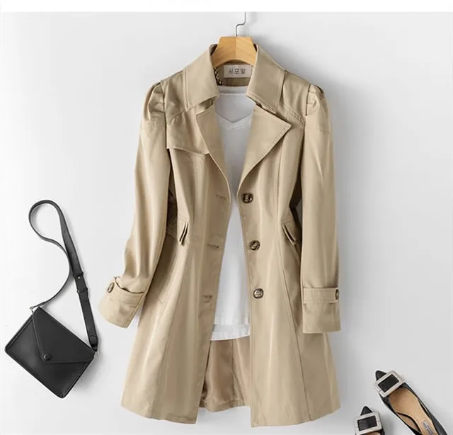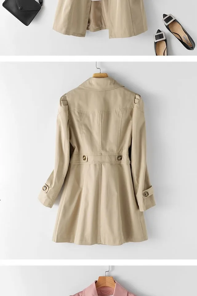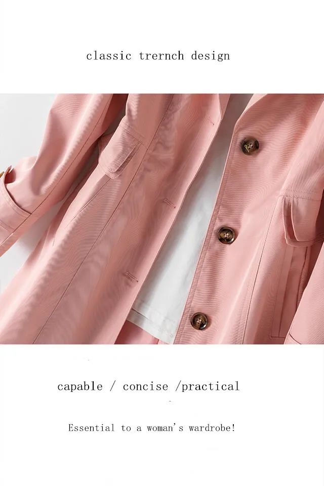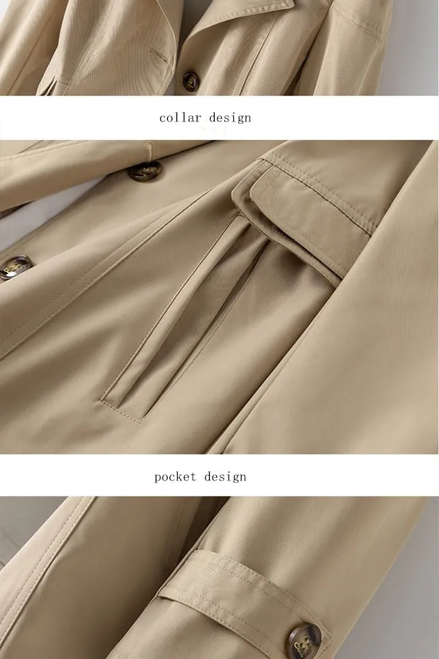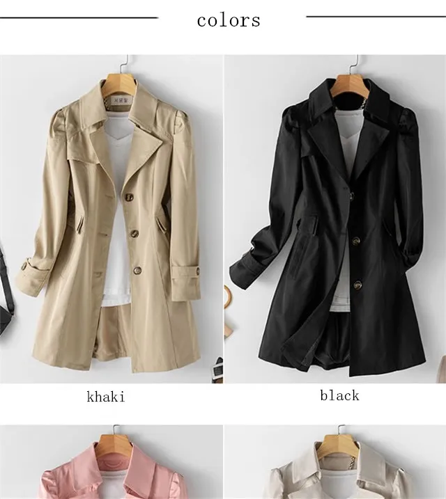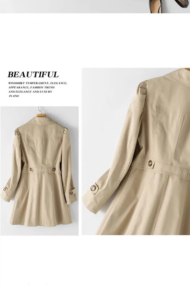 Women Black Trench Windbreaker Spring Autum New Fashion Big Size Coat Khaki Midi Length Windbreaker Female Outerwear M 5XL