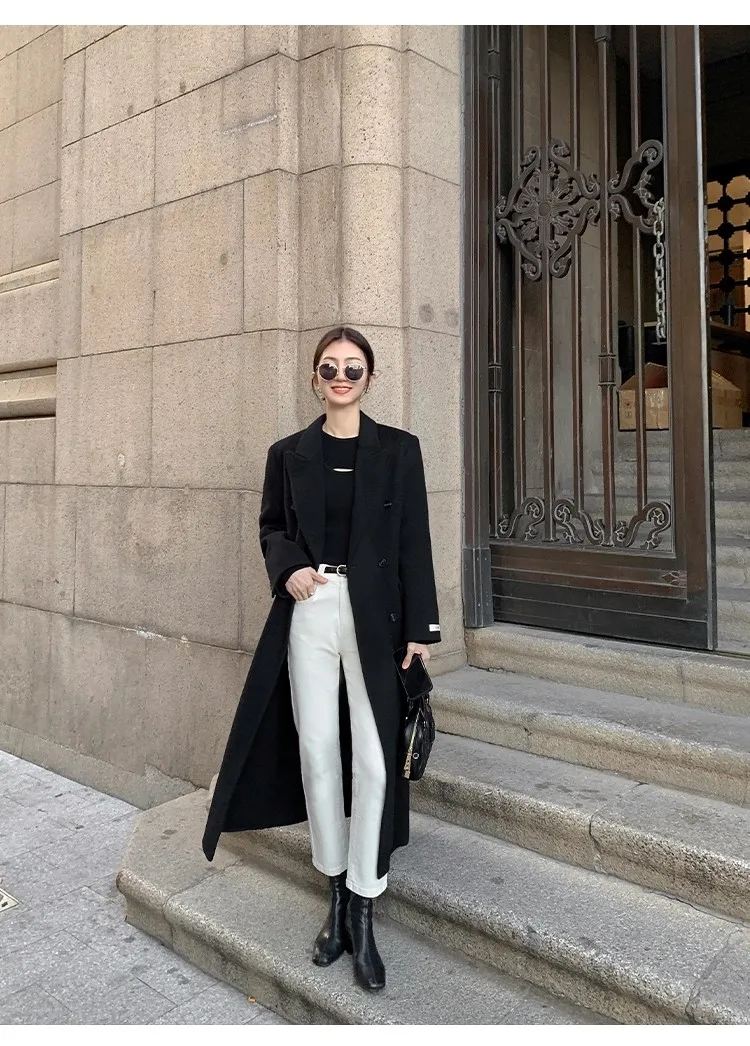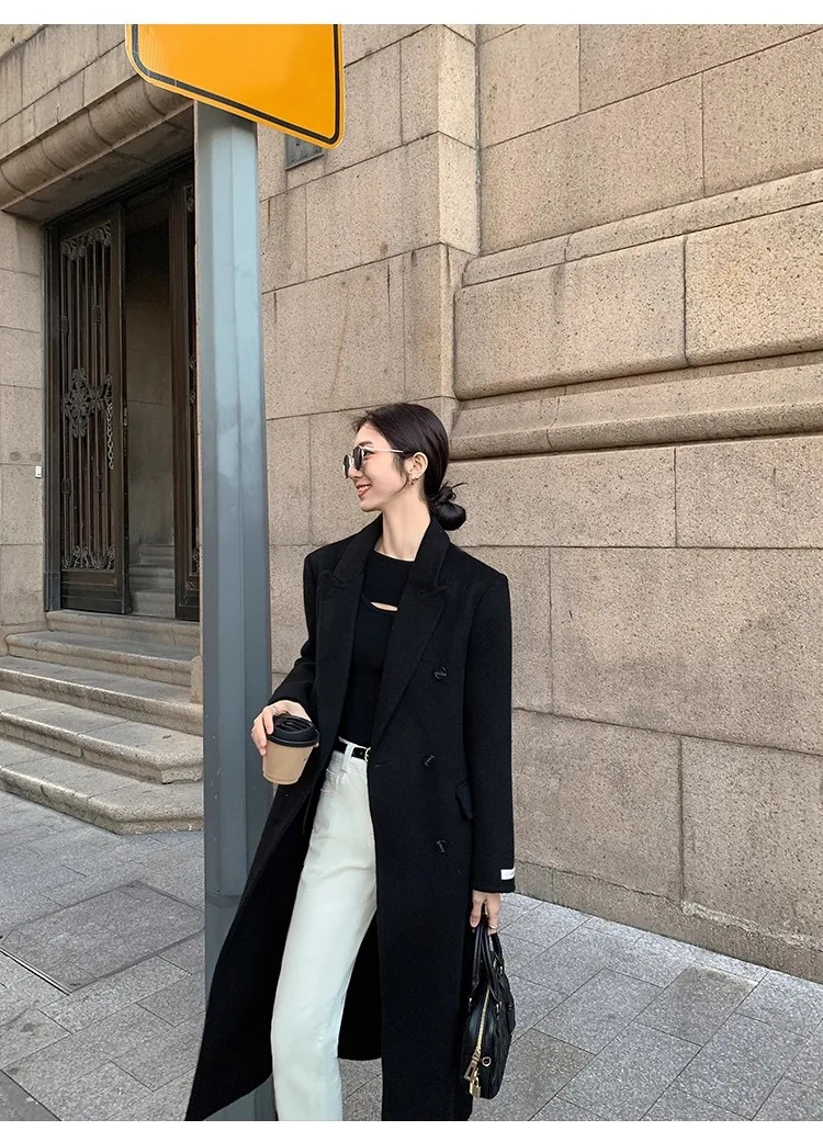 Women double-sided long woolen overcoat for autumn winter fashion wool outerwear with lining and belt brand jacket