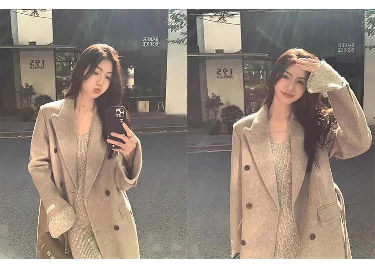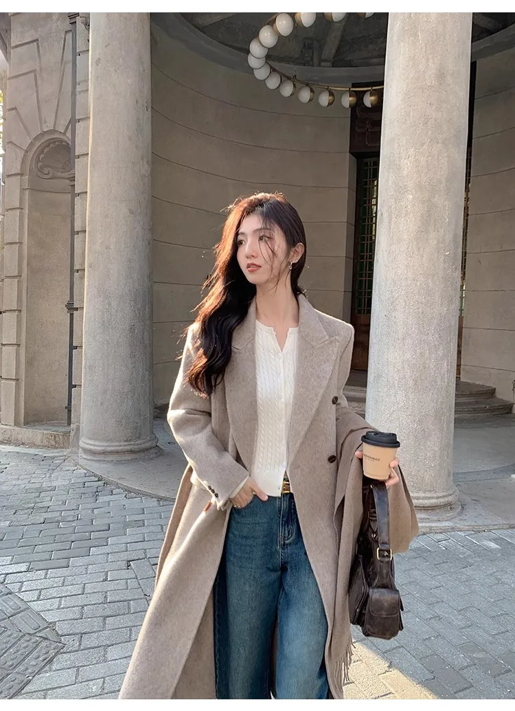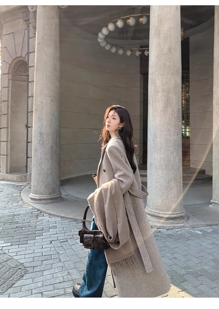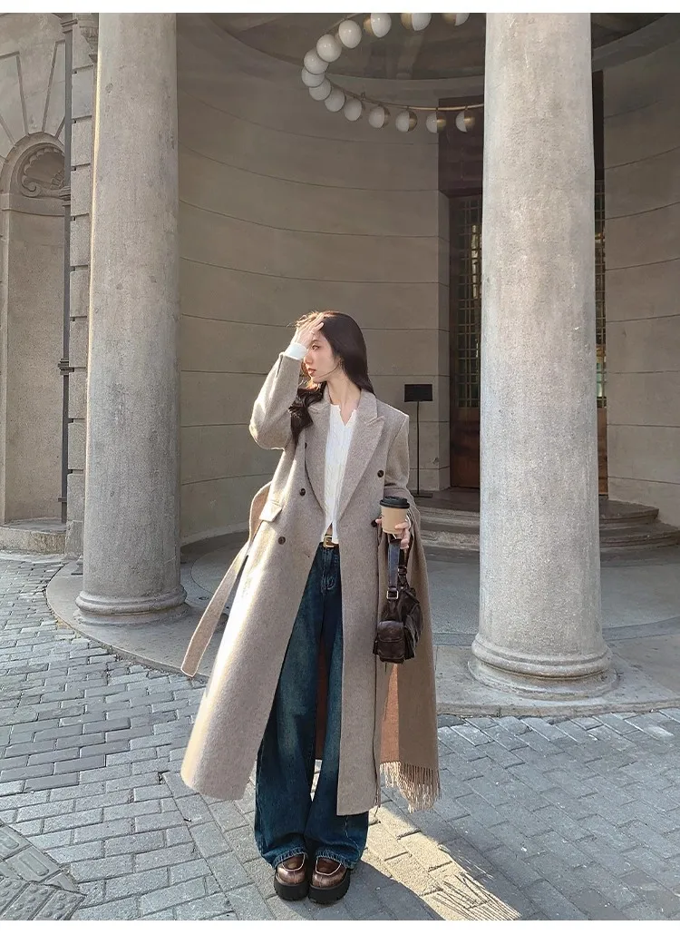 Be the first to review “Women double-sided long woolen overcoat for autumn winter fashion wool outerwear with lining and belt brand jacket” Cancel reply