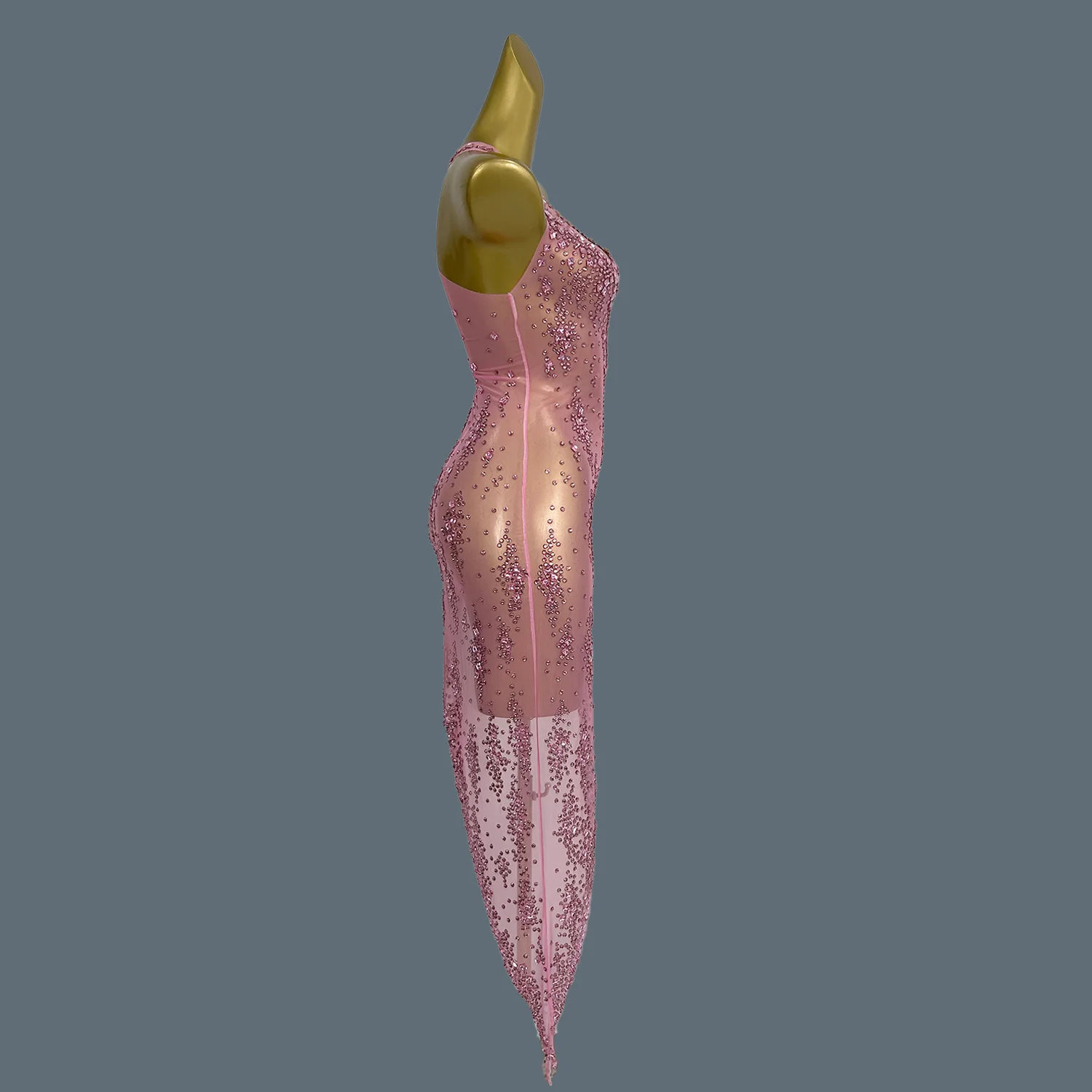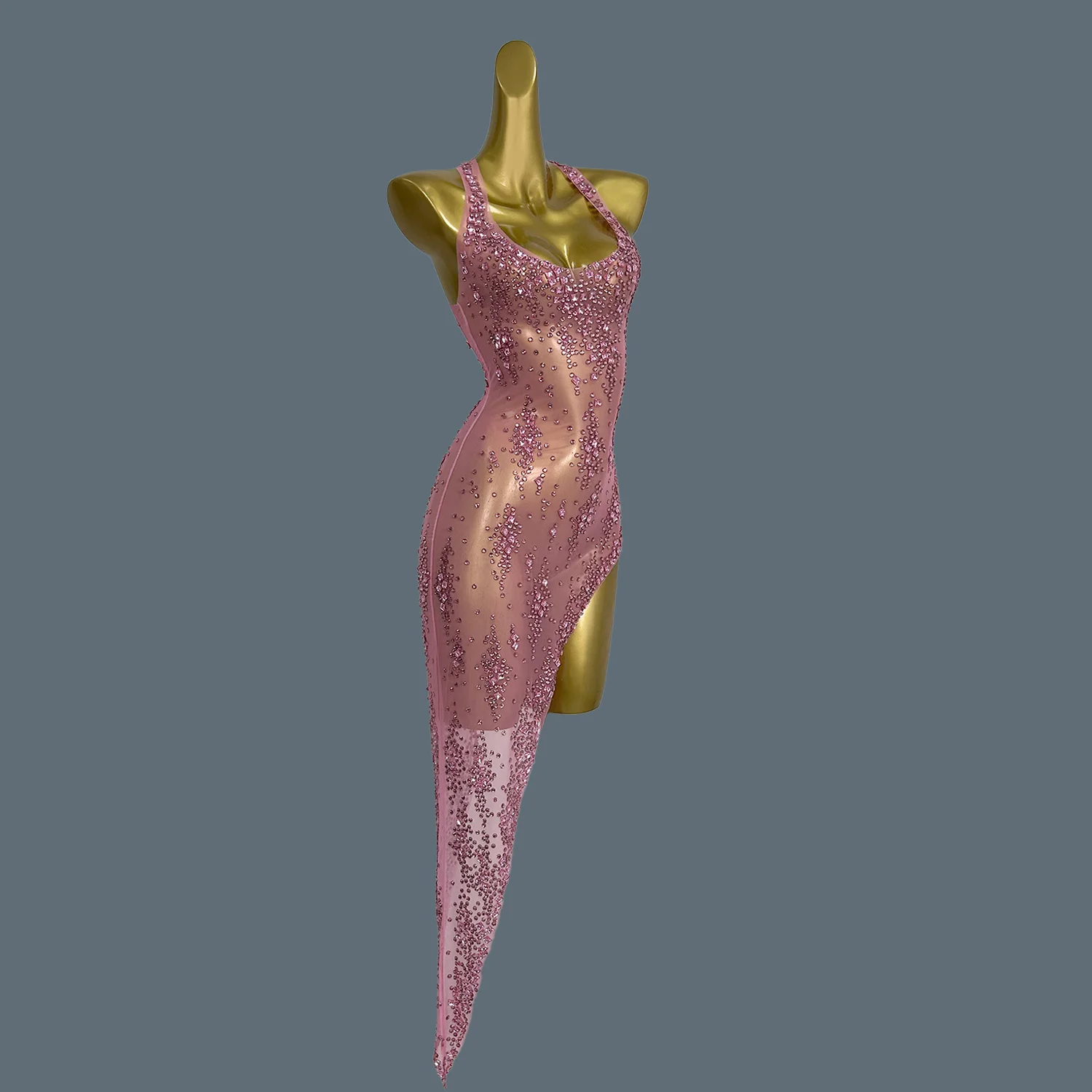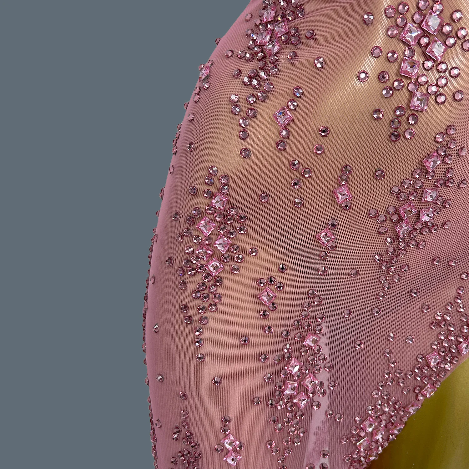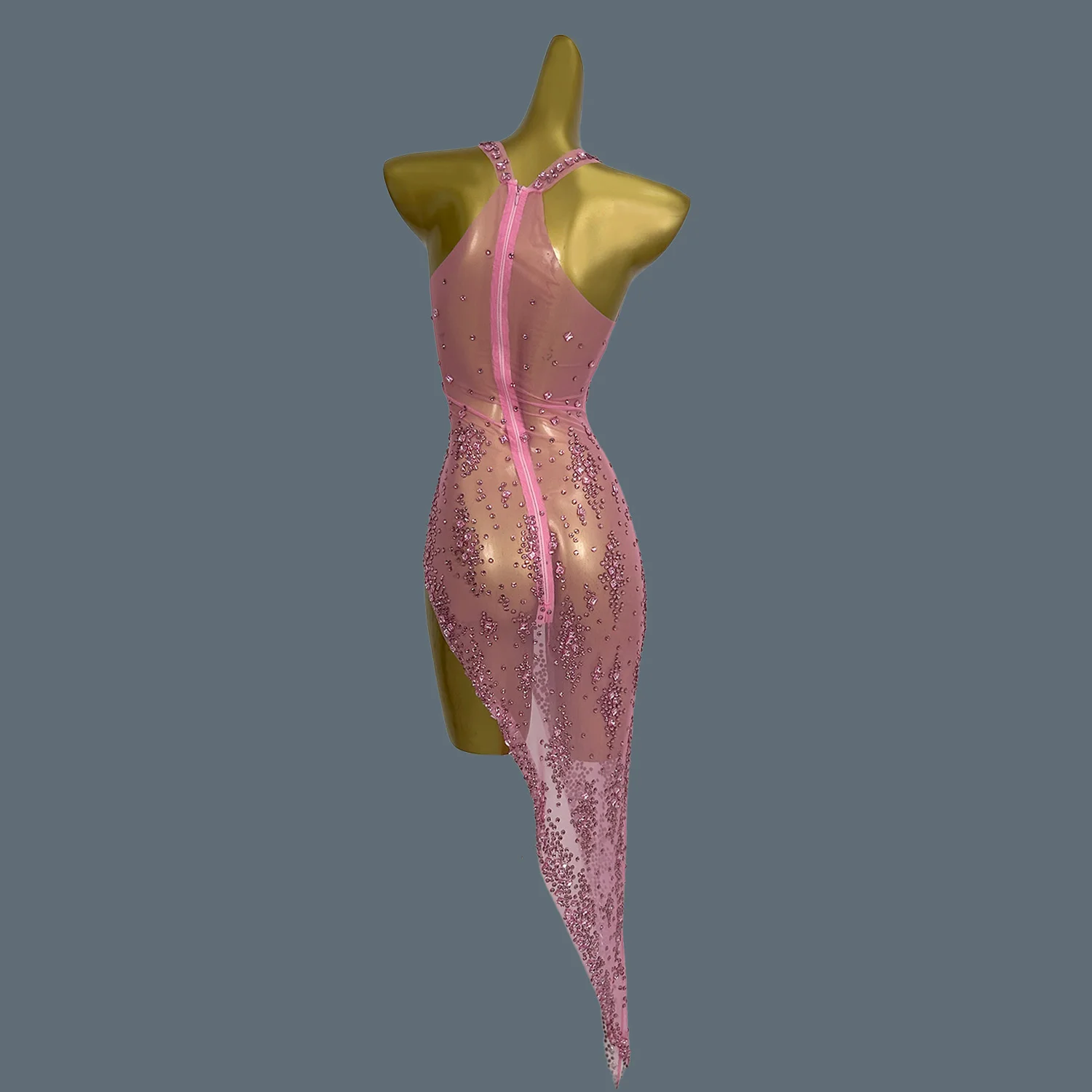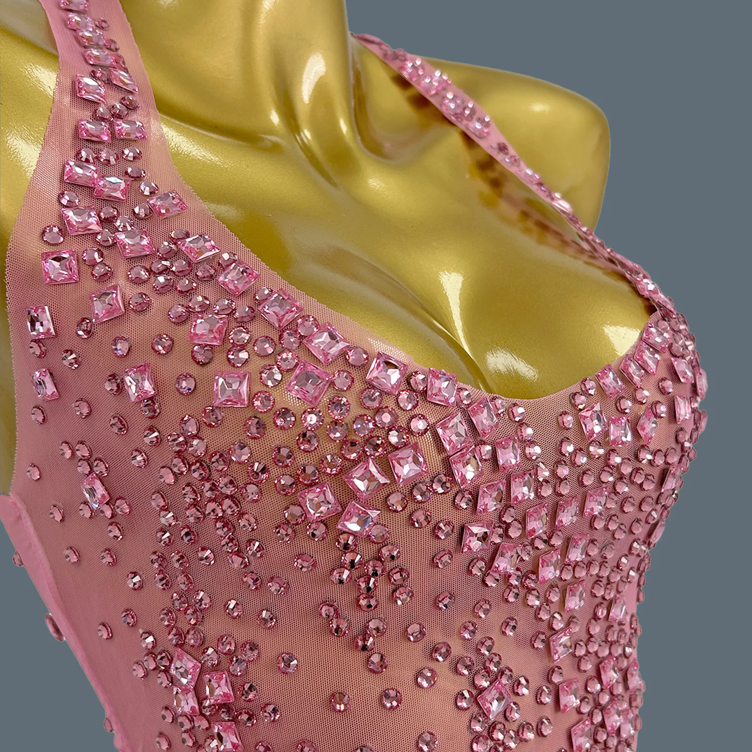 Women Luxury Shiny Pink Crystal Mesh Party Dresses Evening Birthday Celebrity Prom Gowns Nightclub Birthday Dance Costume Xinghe