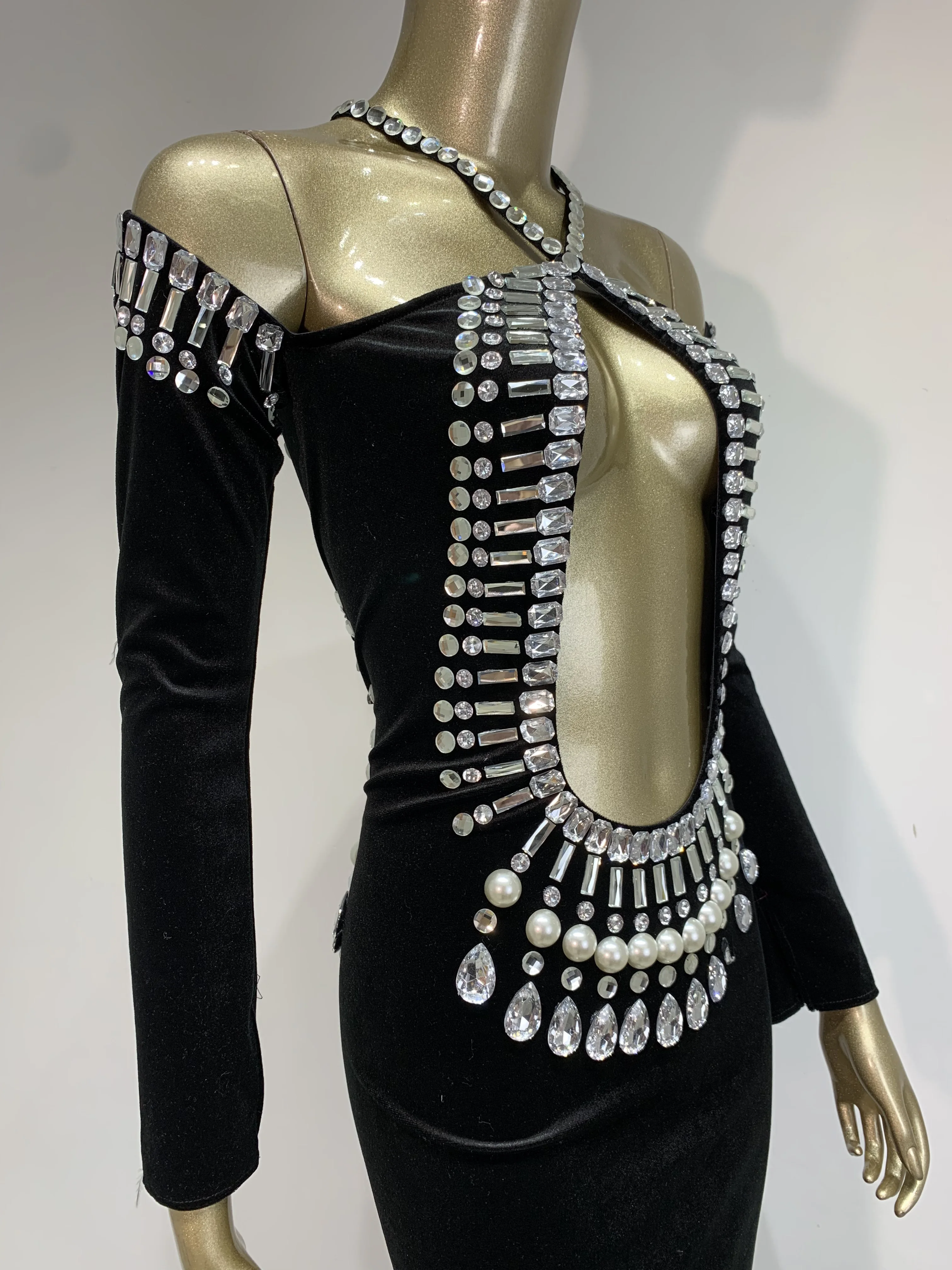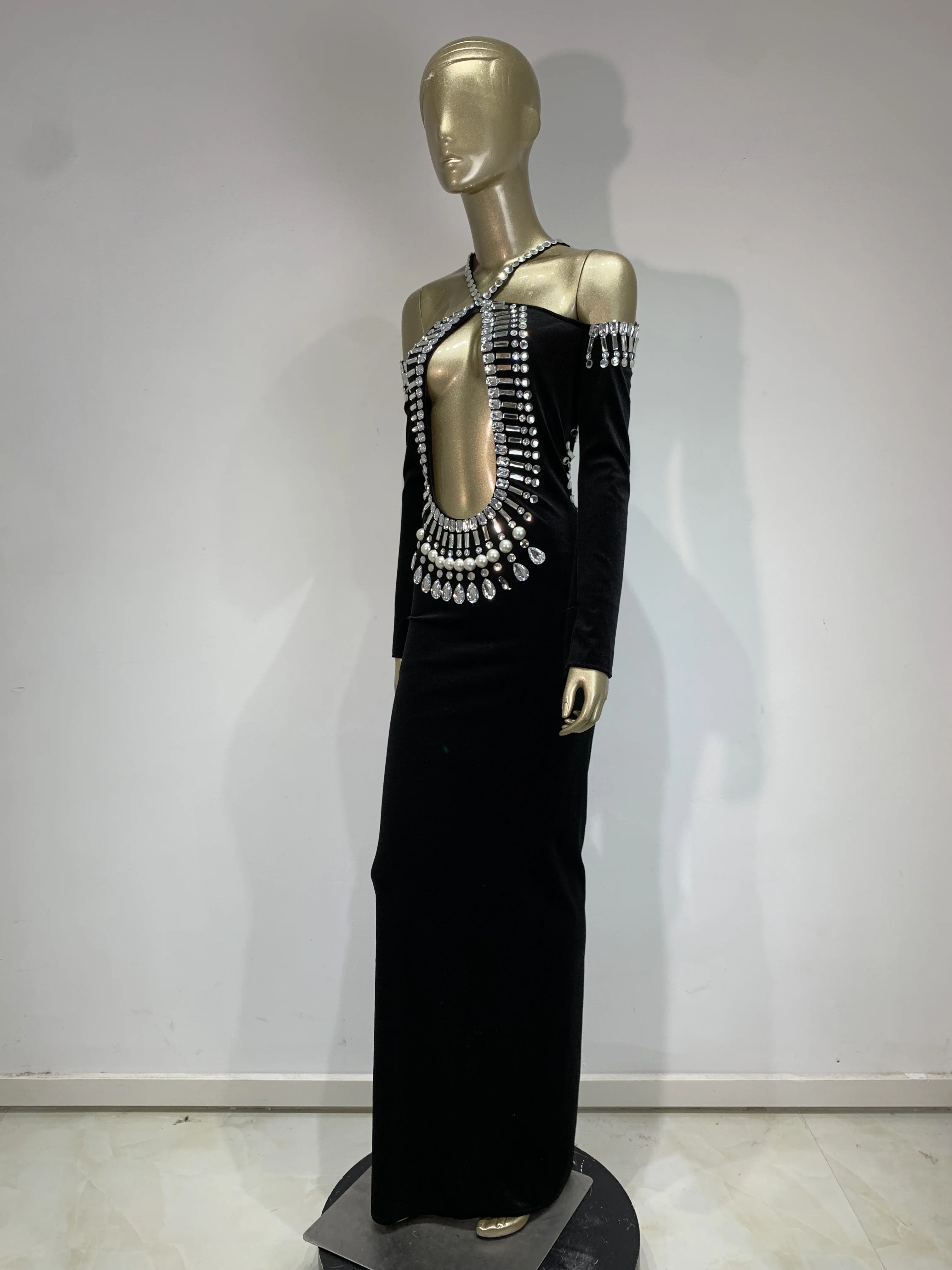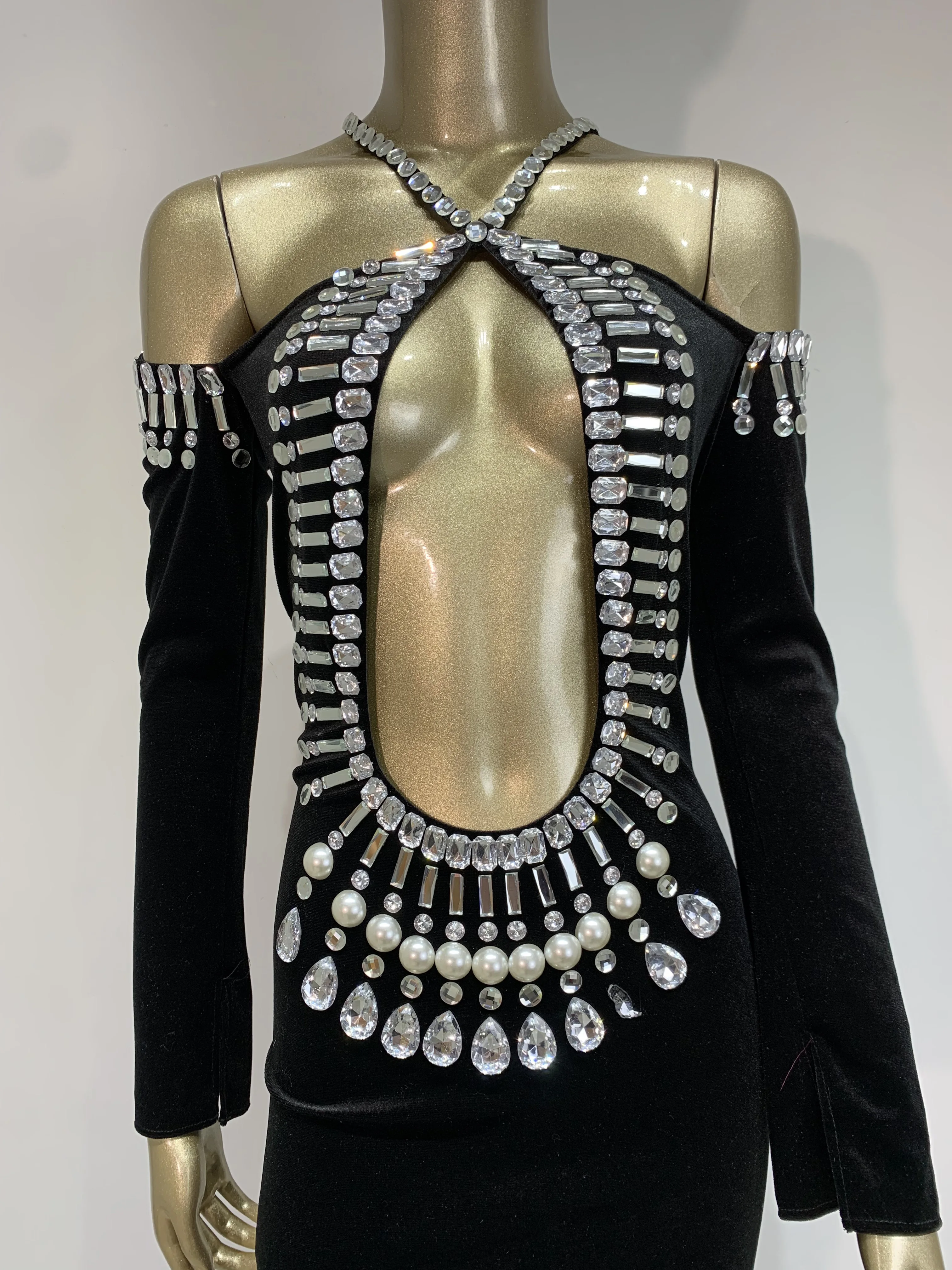 Be the first to review “Women Sexy Hollow Out Bodycon Sexy Full Diamond Pearl Long Dress Nightclub Bar Party Performance Costume Luxury Birthday Dress” Cancel reply