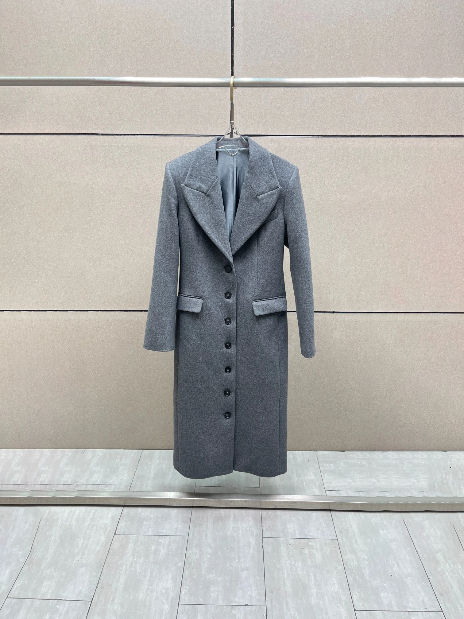 Women’s Autumn WinterNew Style Y2K Shoulder PadLong WoolCoat Turn-downCollar Single Button High Quality Fashionable Tweed Jacket