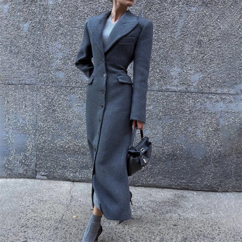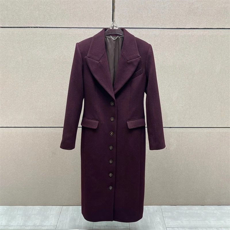 Women’s Autumn WinterNew Style Y2K Shoulder PadLong WoolCoat Turn-downCollar Single Button High Quality Fashionable Tweed Jacket
