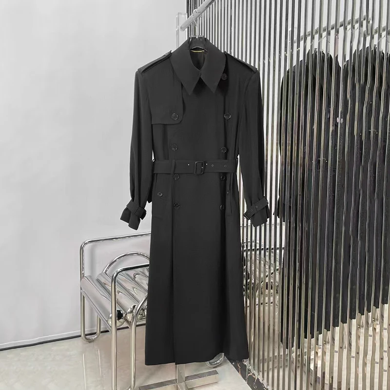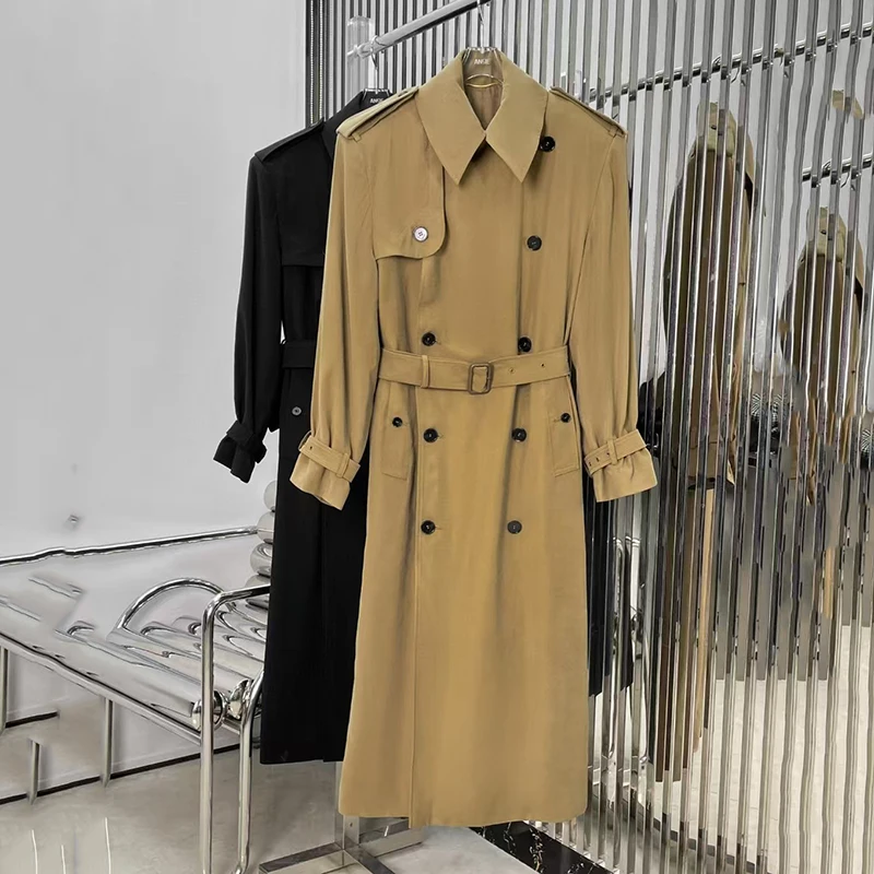Women’s Classic Belt Waist Trench Coat, Double Breasted Long Jacket Coat, Fashion Casual Versatile Top, Summer, New, 2025