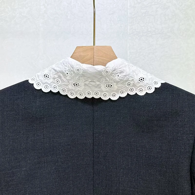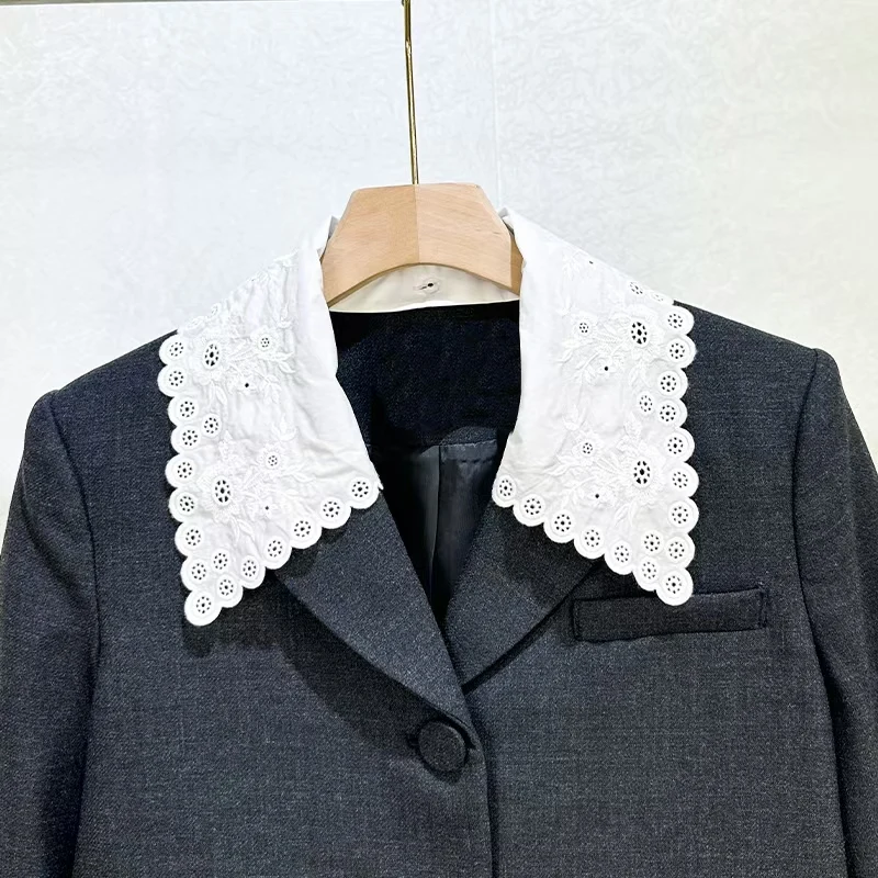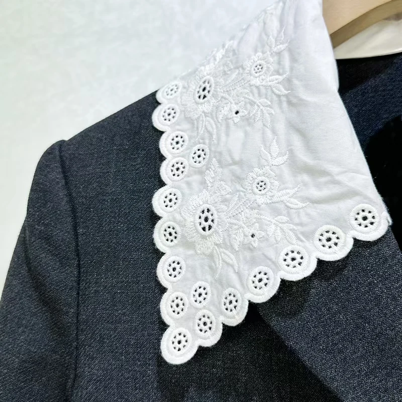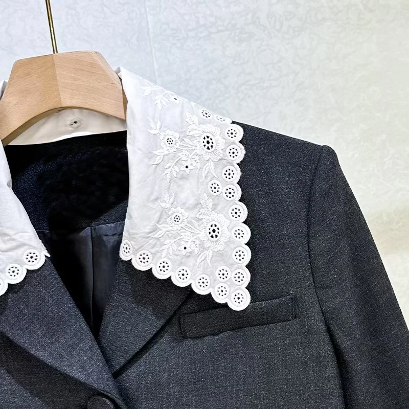 Women’s Contrast-Color Embroidered Lapel Jacket Stylish Commuter Short-Length Versatile Blazer 2026 Spring New Arrival Y2K