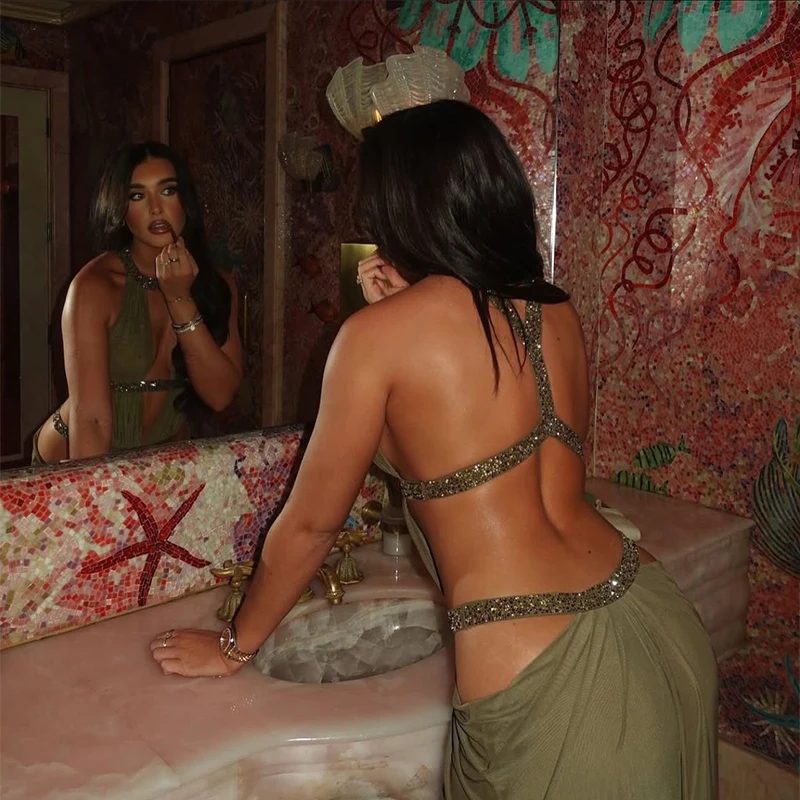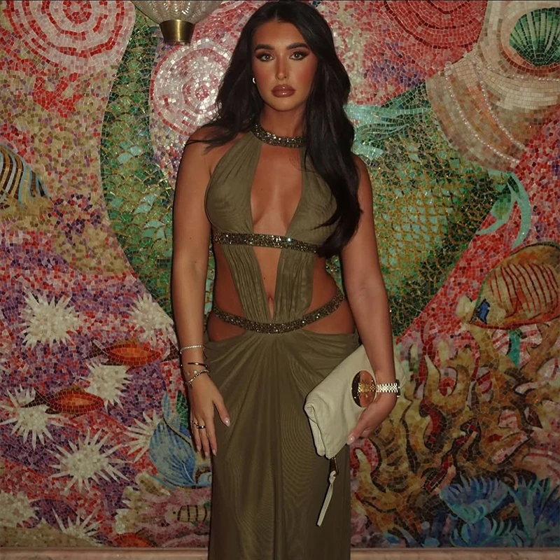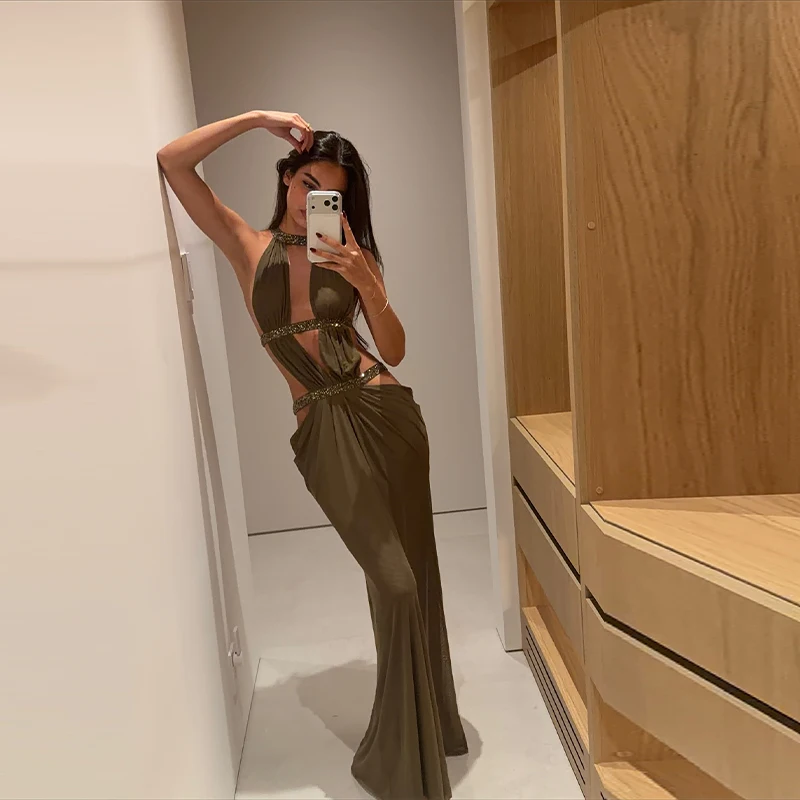 Women’s Elegant Shaping Long Vistidos Simple Sexy Chic Back Hollow Design Shiny Lace Up Gown New Luxury Night Party A-line Dress