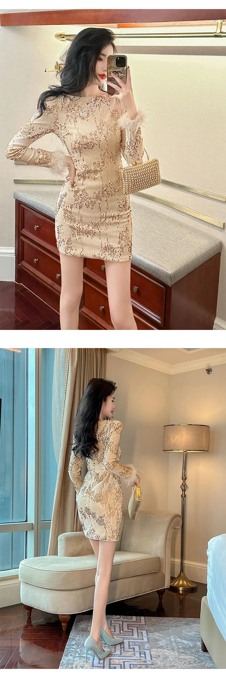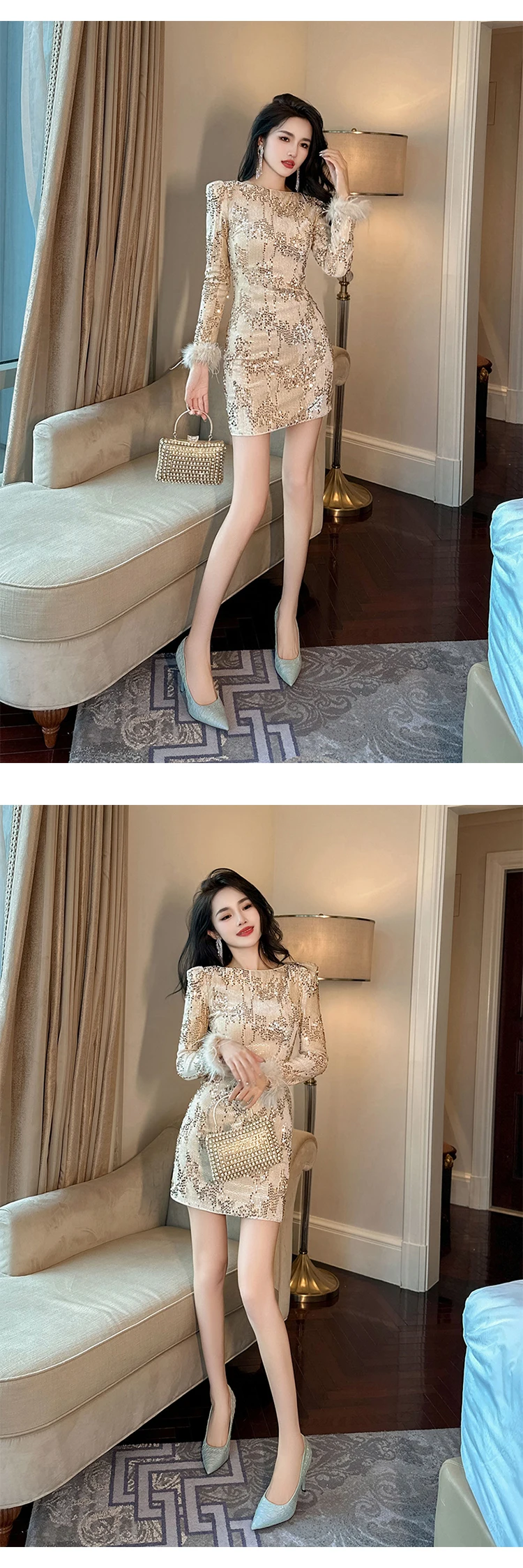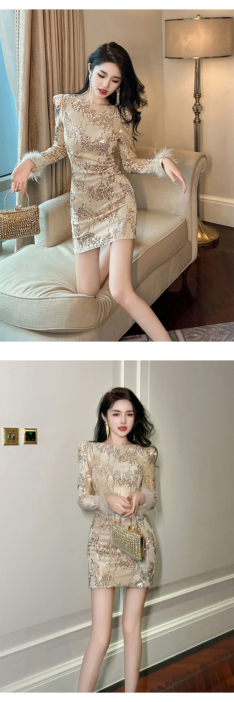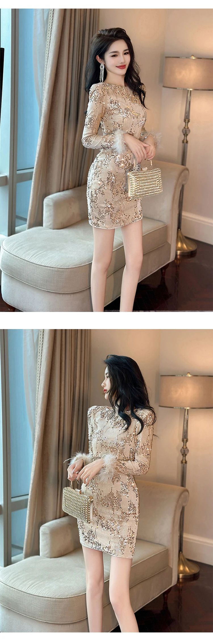 Women’s Exquisite Elegant Prom Dresses Vintage Elastic Velvet Bright Sequins Bodycon Club Gown Cocktail Evening Party Vestidos