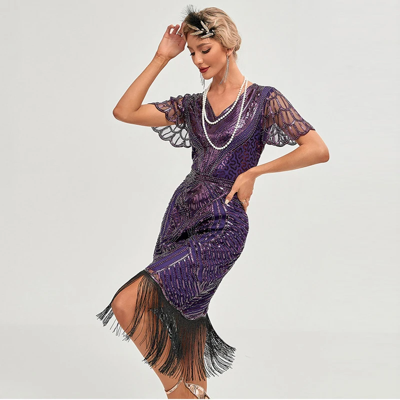 The Art Nouveau and Edwardian Inspired For Bride Bridemaids and Vintage wedding guest dresses, Great Gatsby Themed Party Cocktail, Makeup Costumes, Modern Style Women 1920s Flapper Great Gatsby Dress With Sleeves Vintage Beaded 1920 Art Deco Style Sequin Flapper .