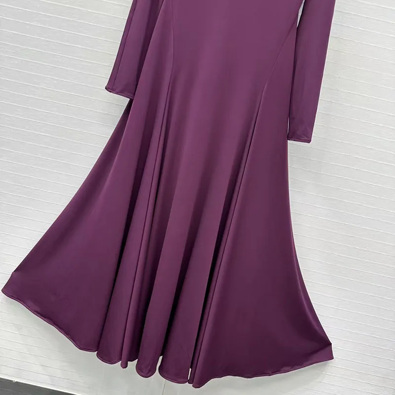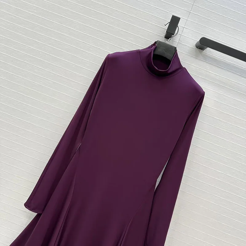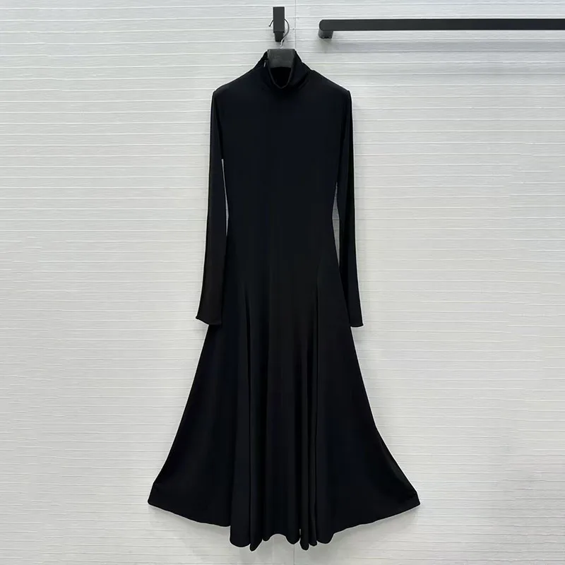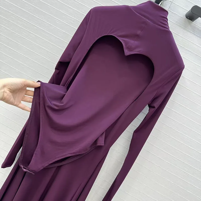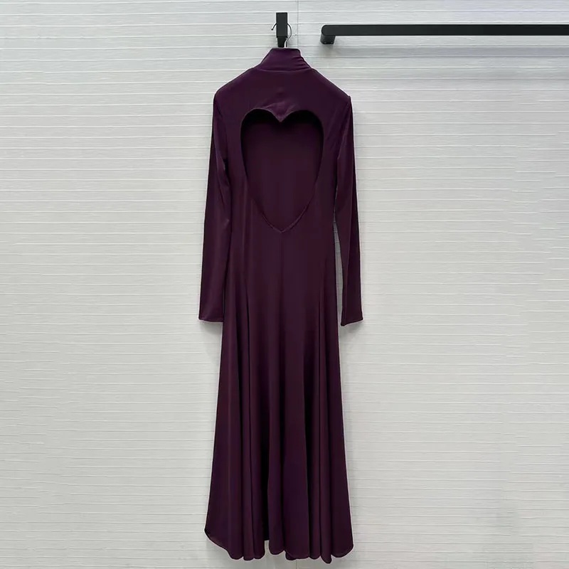 Women’s High-Stretch Dress, Stand Collar Long Sleeve with Heart-Shaped Backless Design, Premium Evening Gown, Fall, New Arrival,