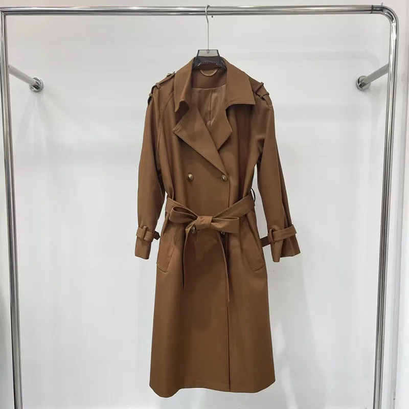 Women’s jacket 2025 Winter new double breasted lapel long women’s windbreaker belt slim fit women’s trench coat y2k Women’s coat