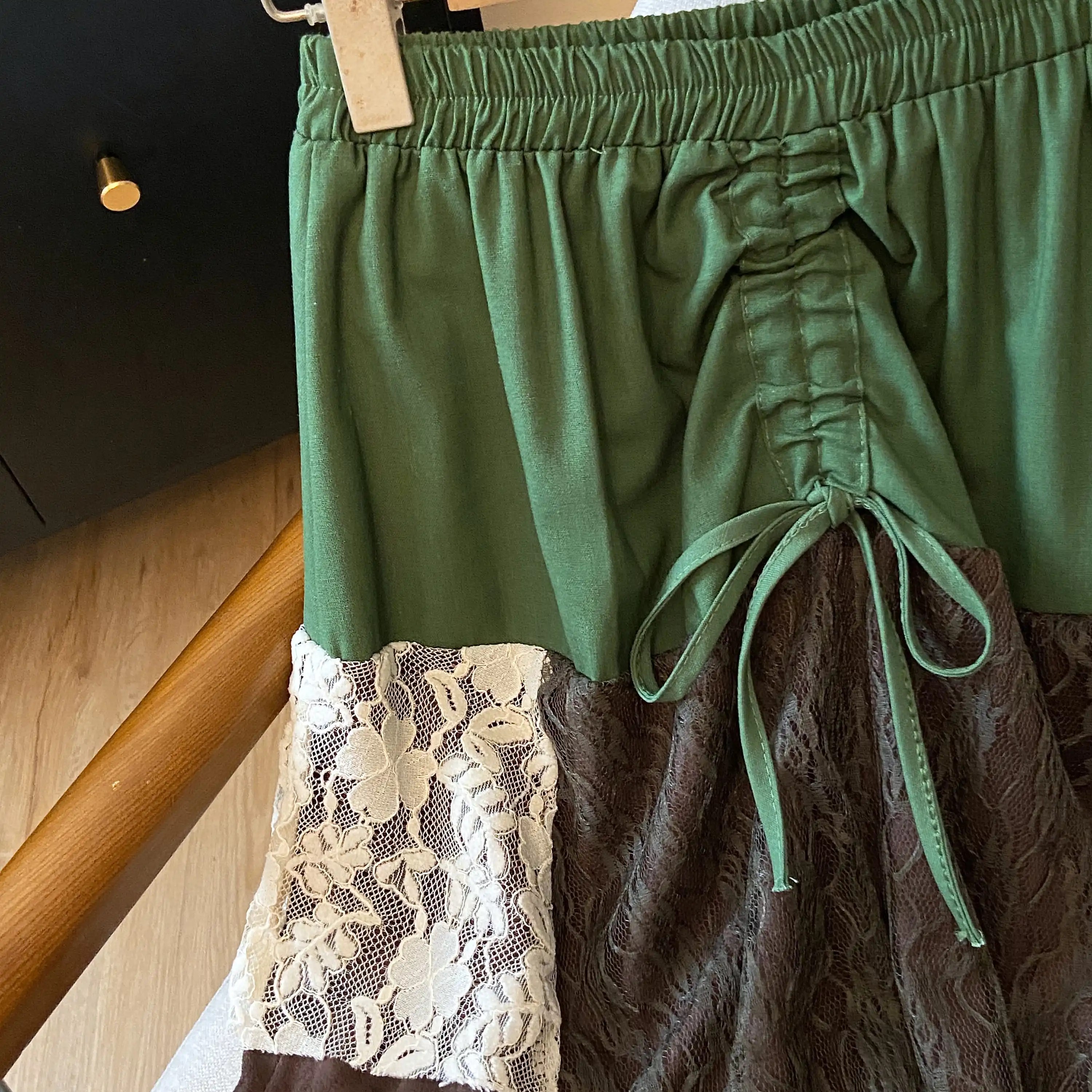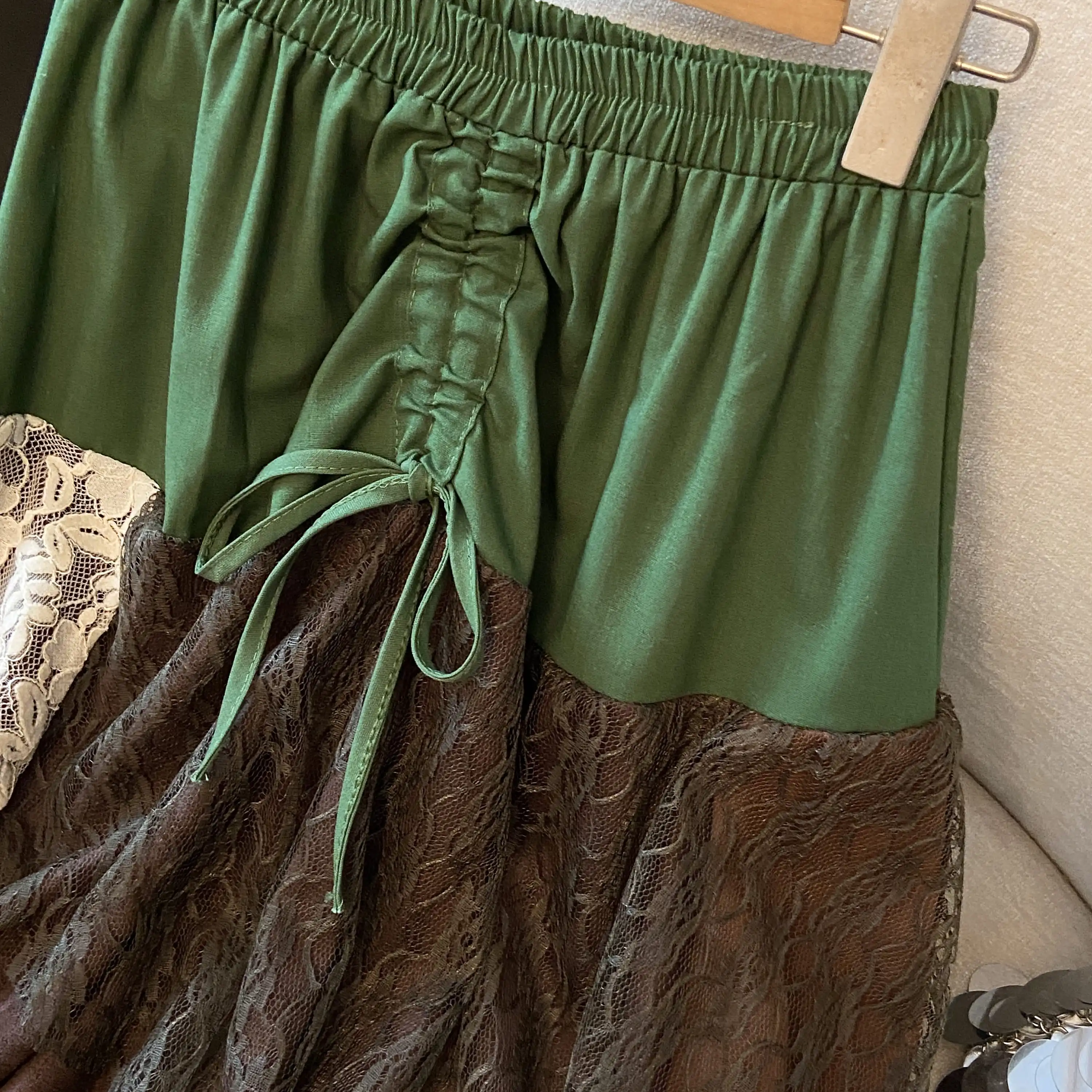 Be the first to review “Women’s Retro Art A-line Midi Dress Lace Paneling Ruched Shirring Green Autumn Japanese Y2K Niche Harajuku Pastoral Fairy Skirt” Cancel reply