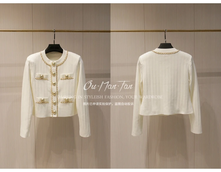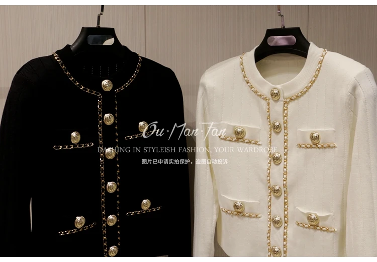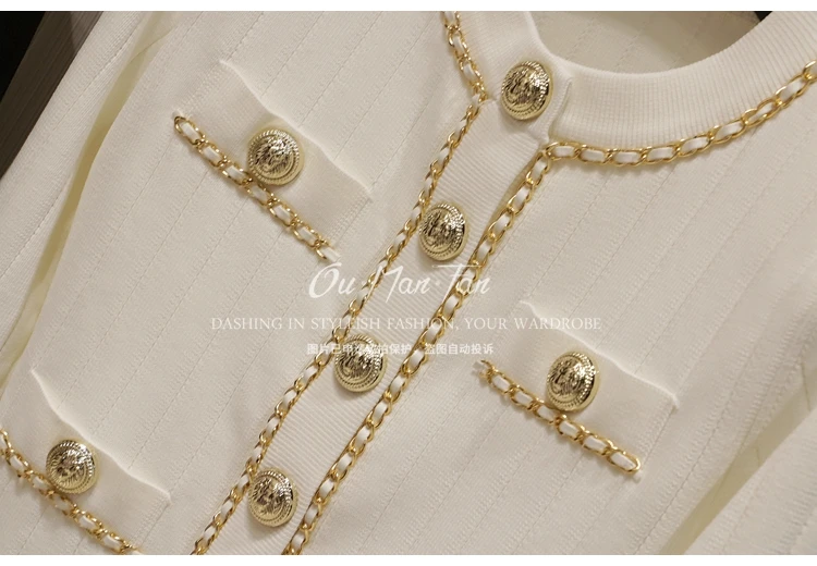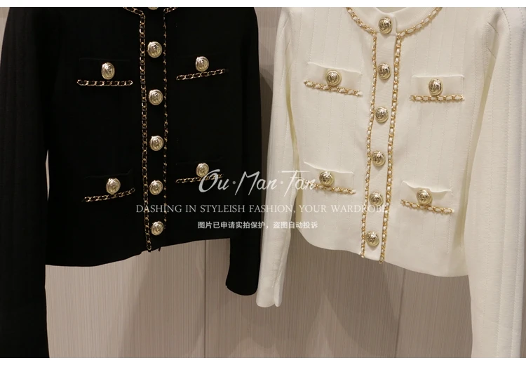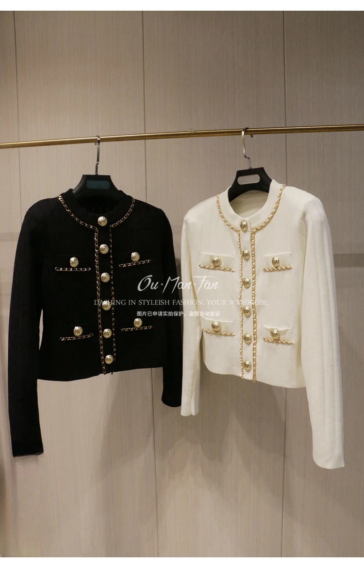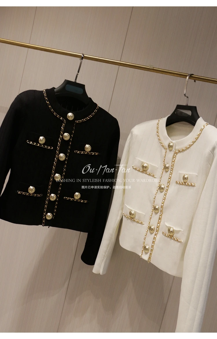 Women’s Short Slim-fit Sweater Chain Gold Buckle Jacket Autumn and Winter New Fashion Loose Elegant Women’s Knitted Cardigan