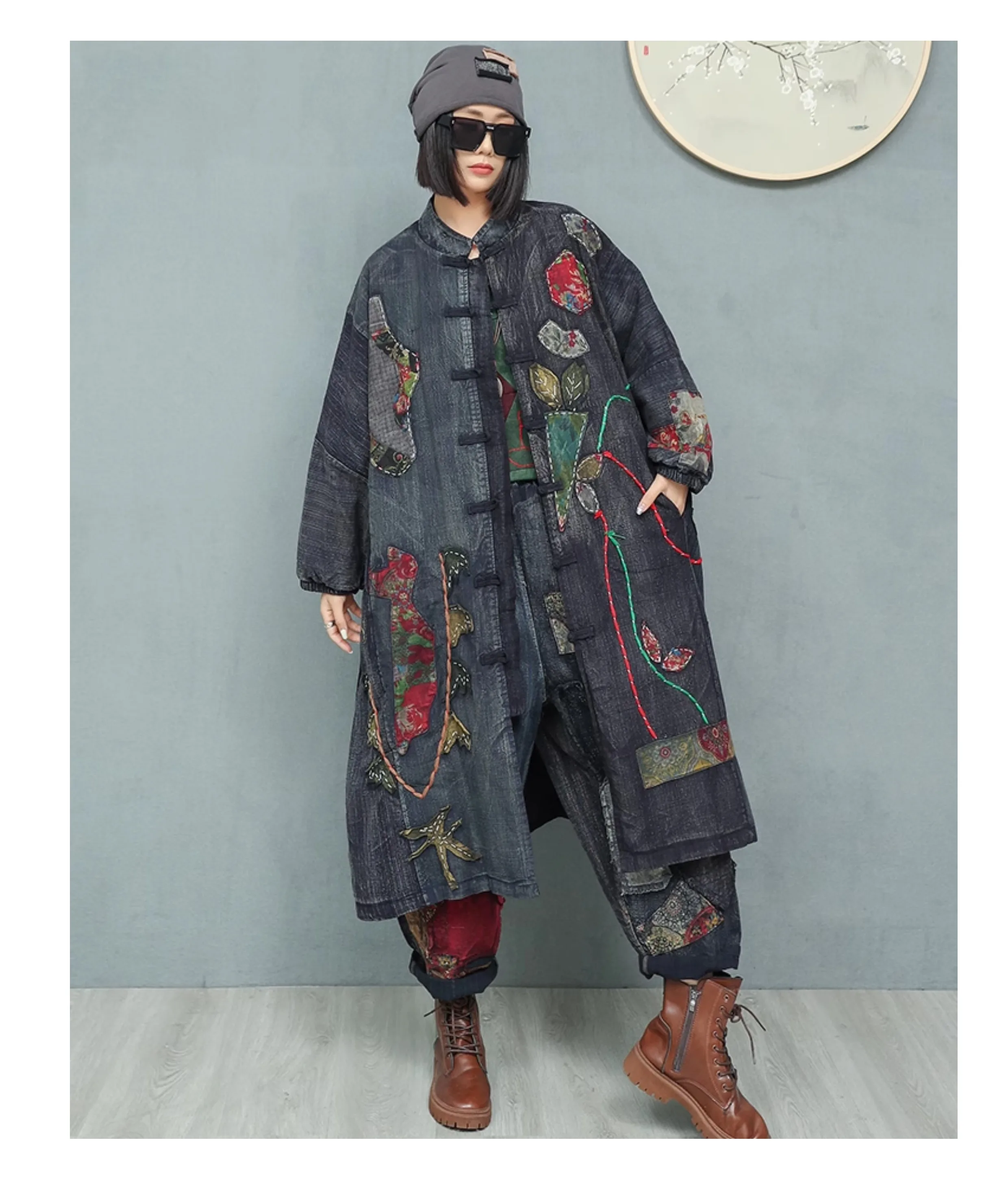 Be the first to review “Women’s Spring Embroidered Appliqué Retro Distressed Old Cloth Stitching Disc Button Cardigan Windbreaker Wide-waisted Coat” Cancel reply