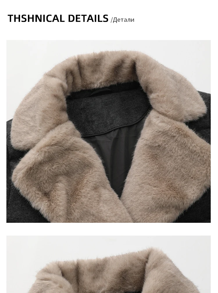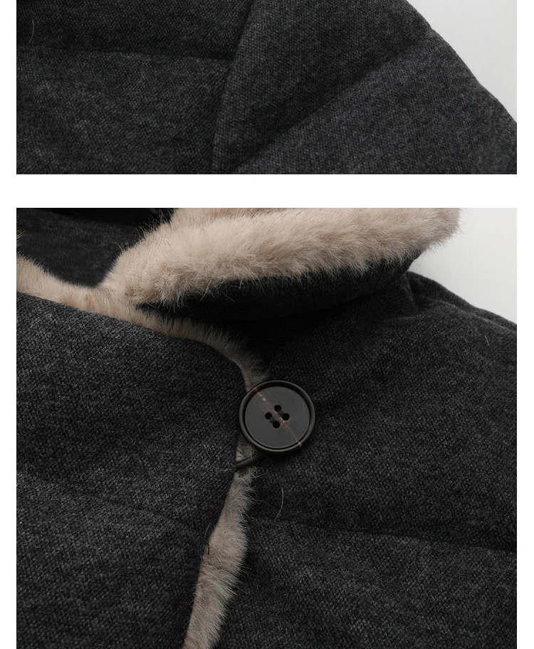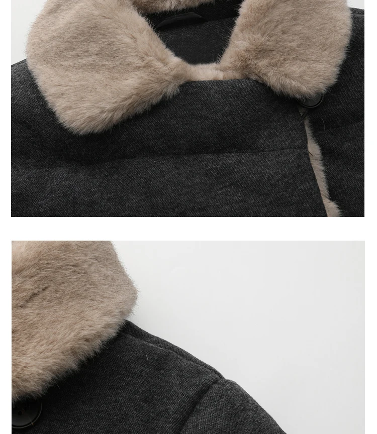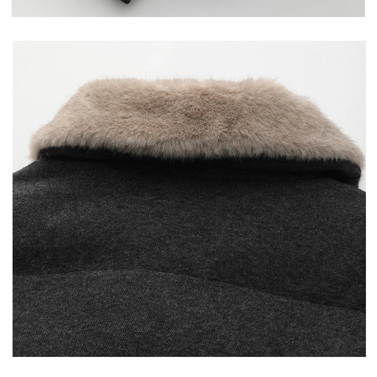 Wool goose down down jacket 2025 winter wool collar double breasted long waist jacket for women