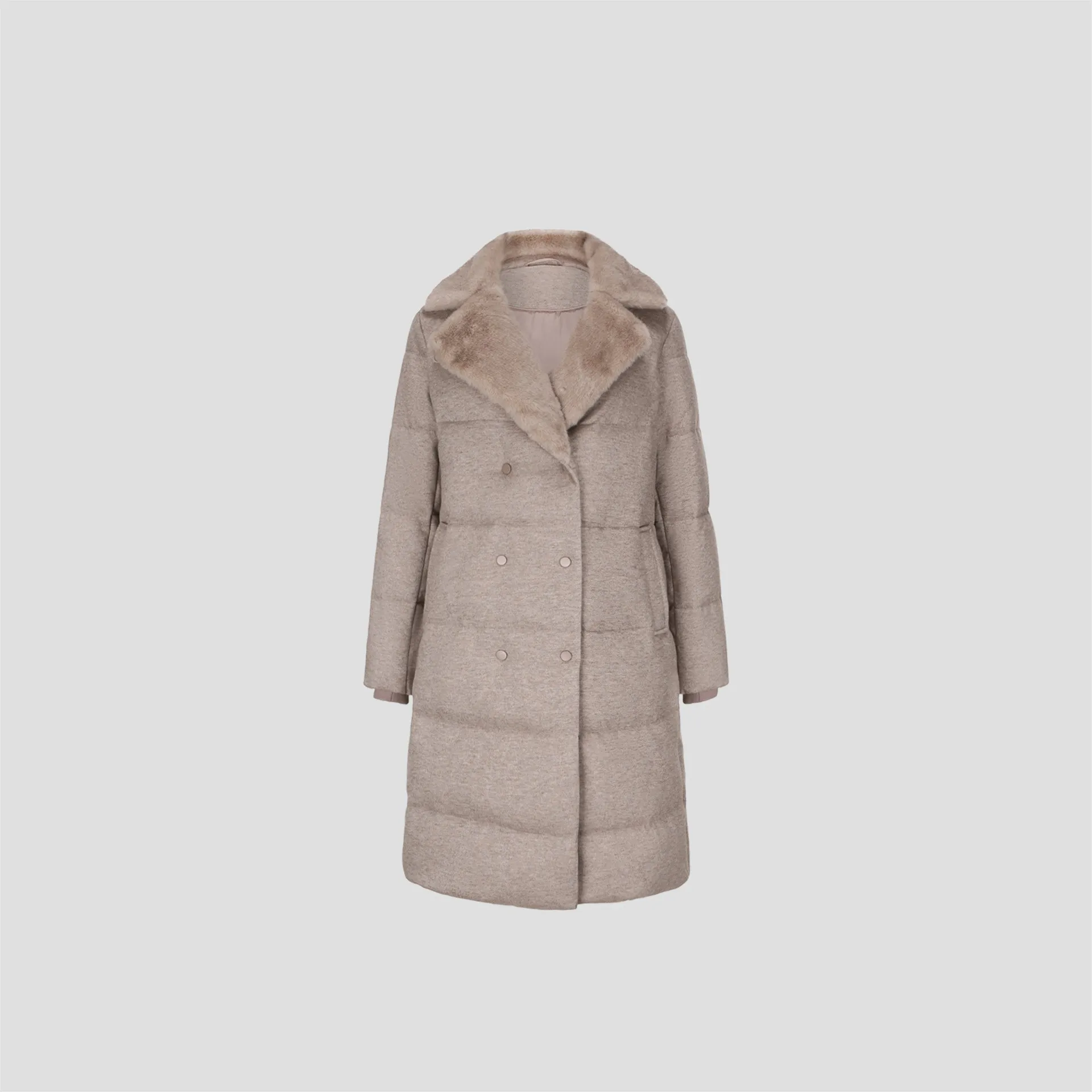 Wool goose down down jacket 2025 winter wool collar double breasted long waist jacket for women