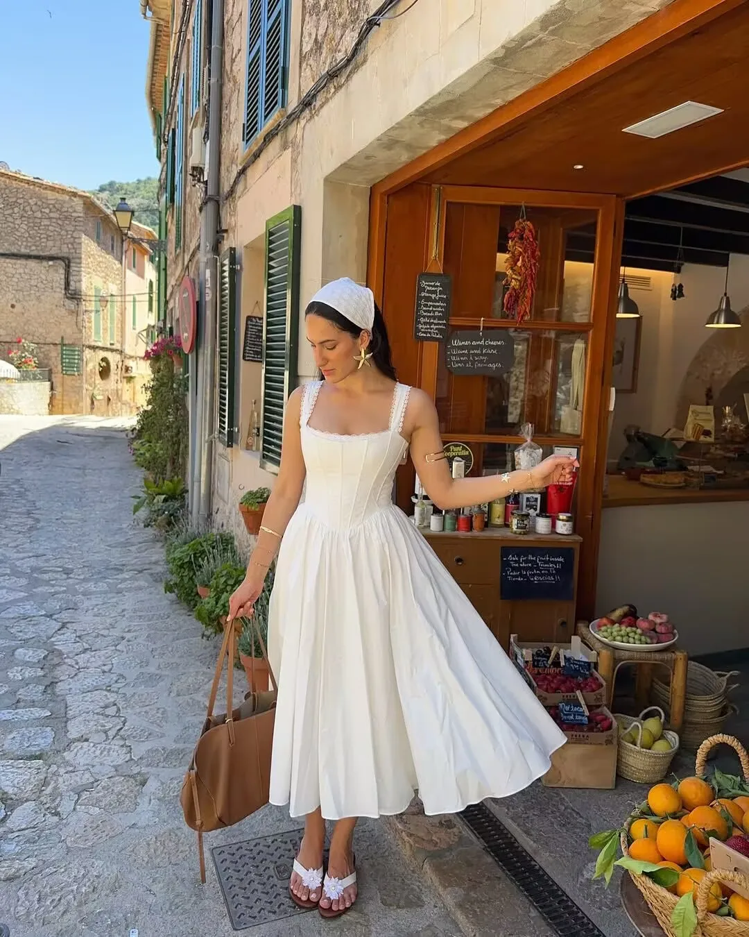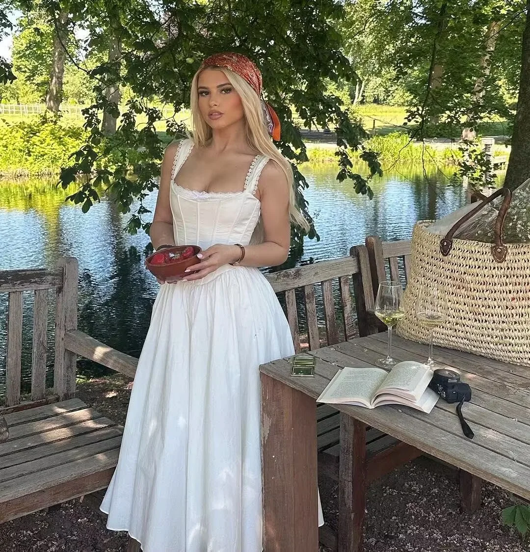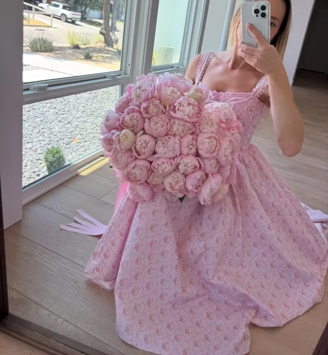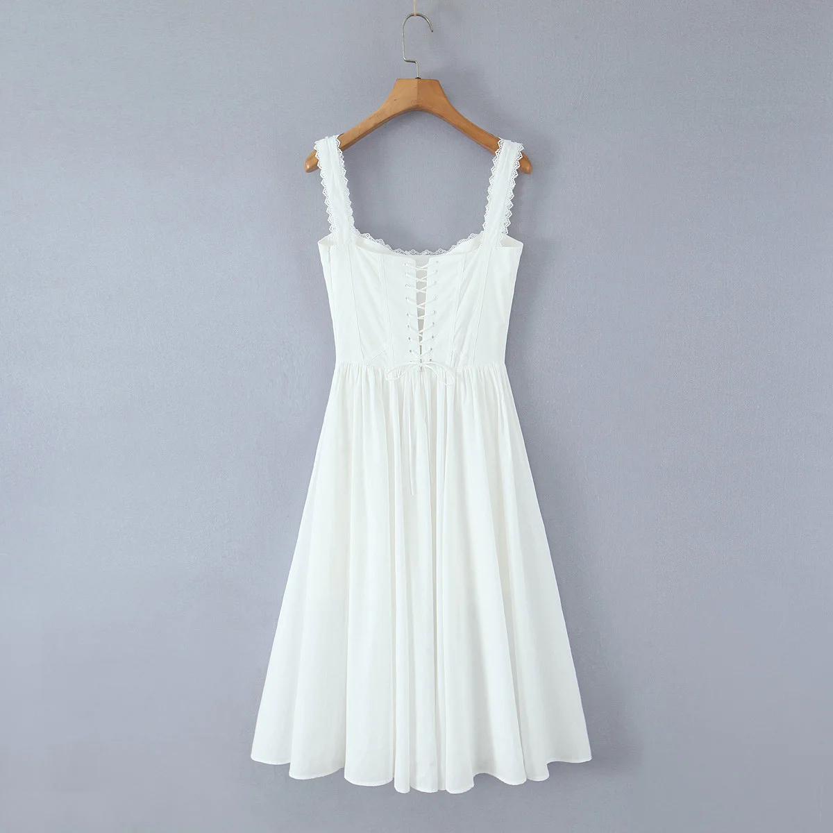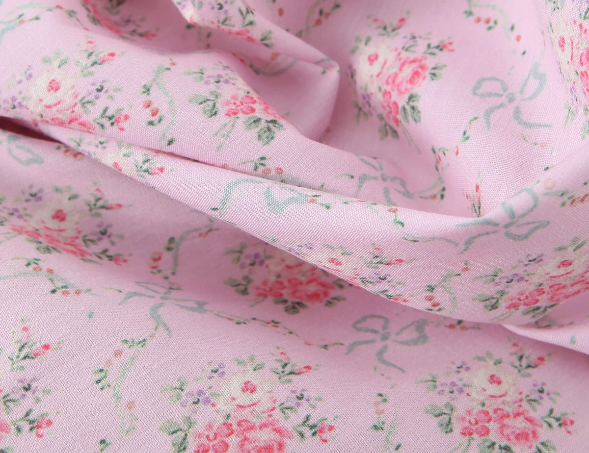 Elegant Pink Floral Print Dress Women Lace Up Bandage Back A-line Midi Summer