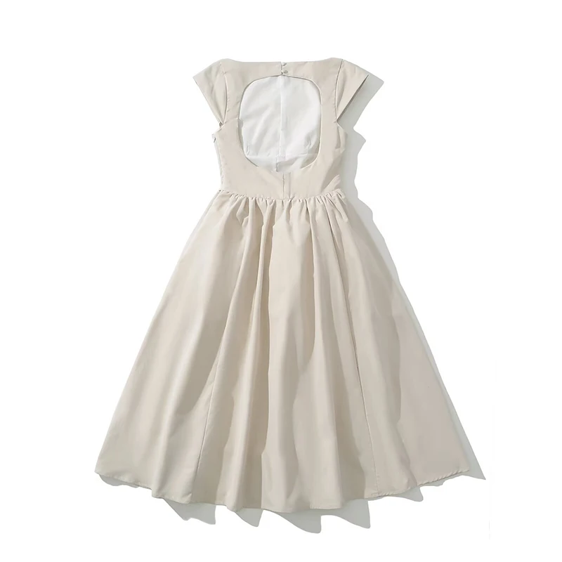 - High Street Women Sexy Backless Pleated Swing A-line Midi Dresses