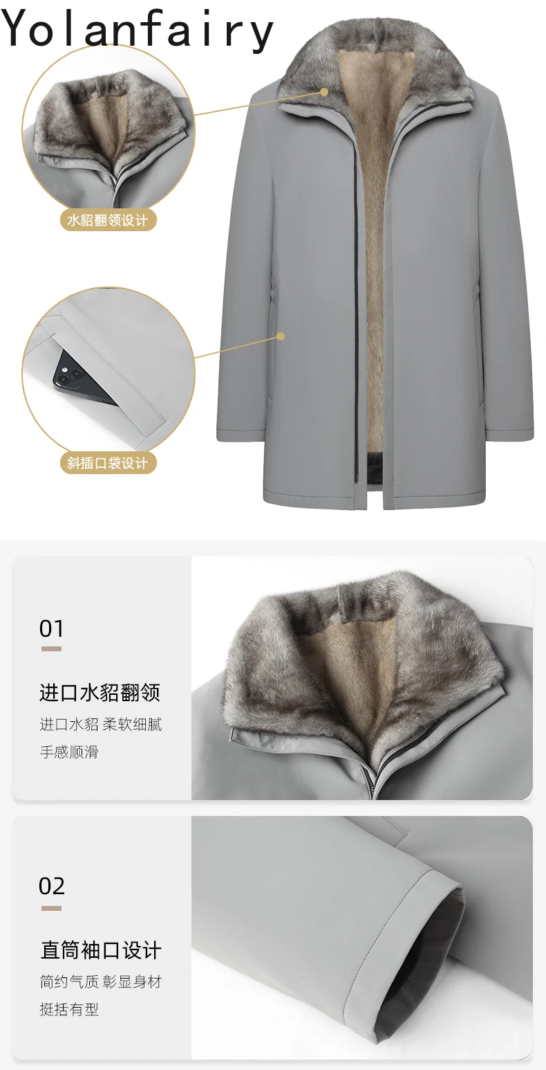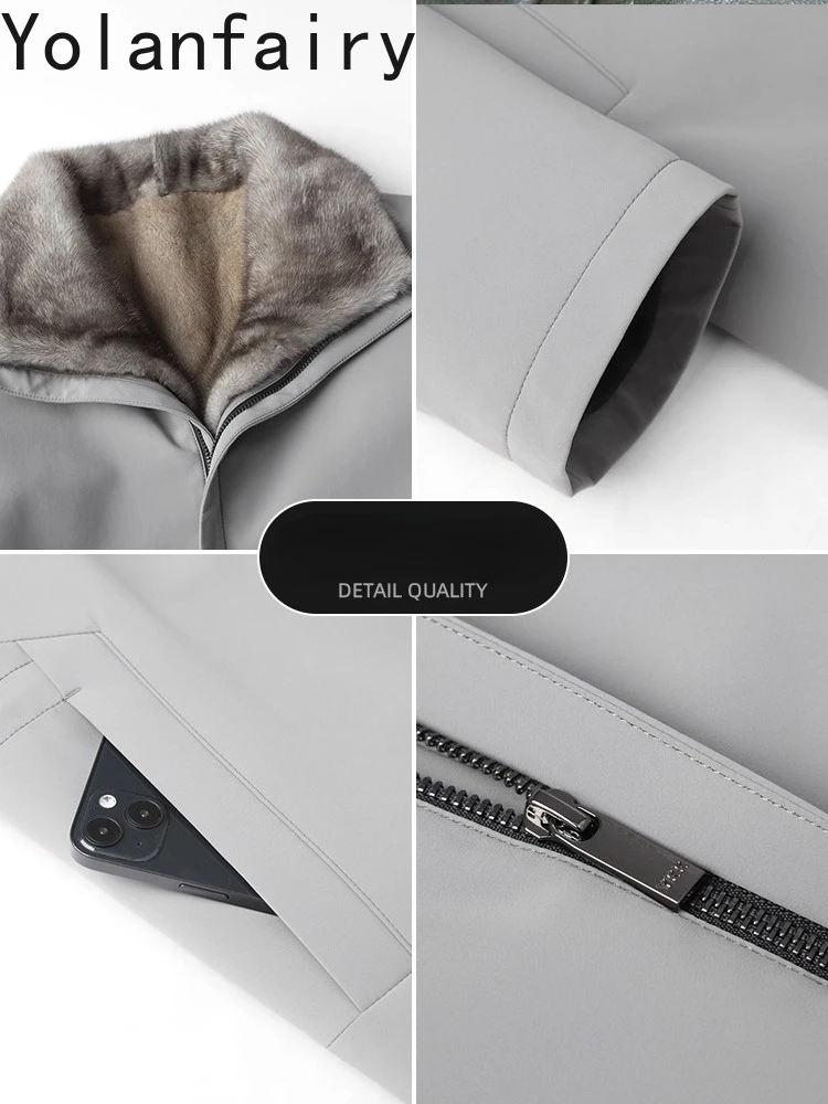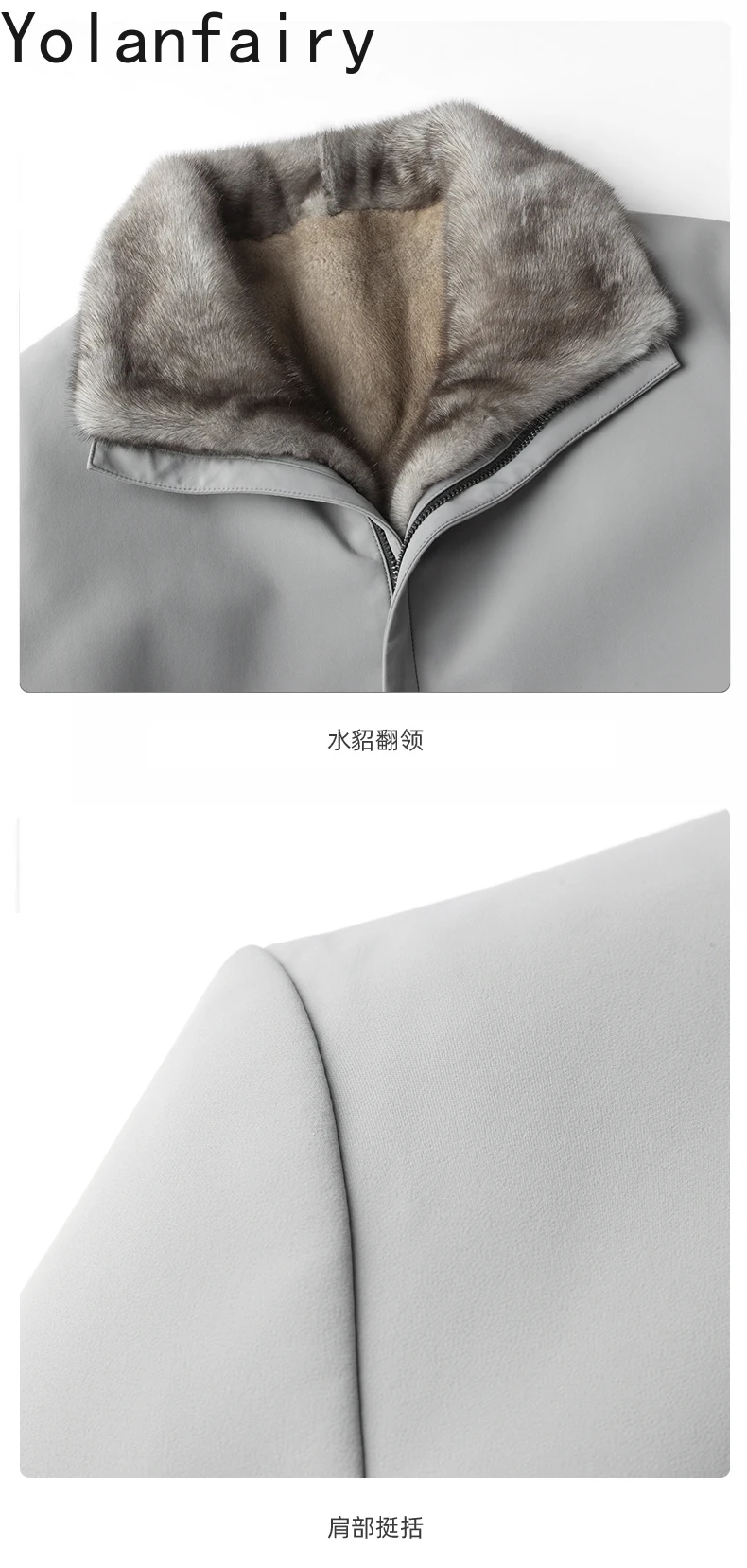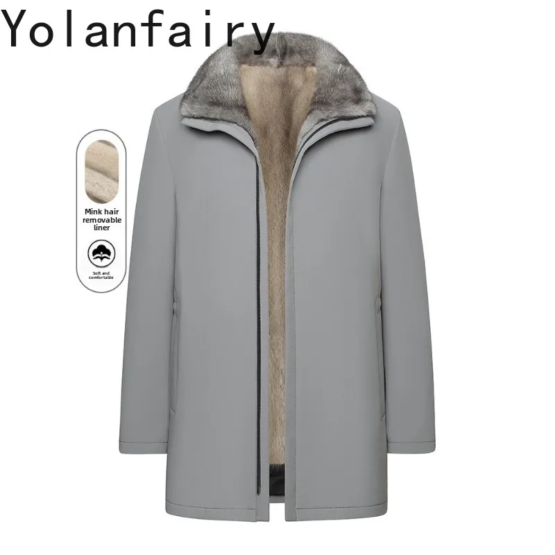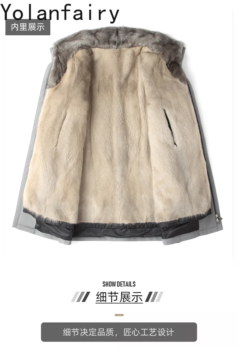 YOLANFAIRY High-end Natural Fur Parka Luxury 2025 Whole Mink Fur Liner Coat Men Warm Winter Clothing Mid-length Fur Coats Jacket
