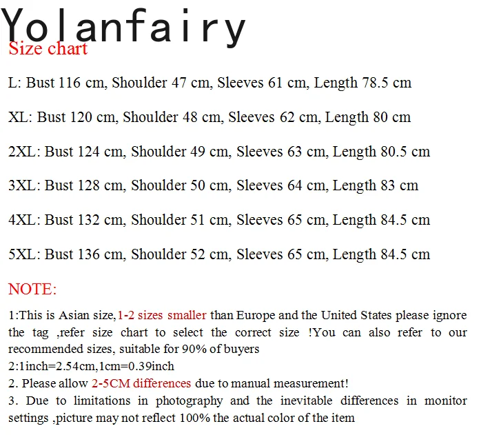5XL: Bust 136 cm, Shoulder 52 cm, Sleeves 65 cm, Length 84.5 cm