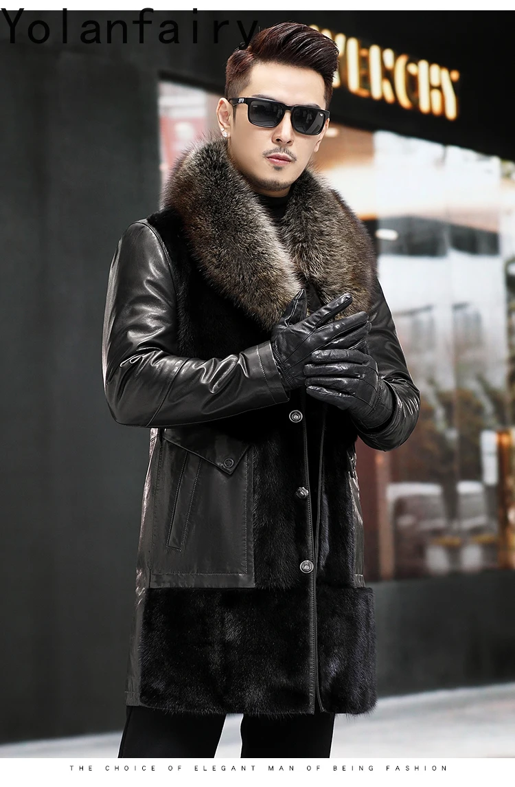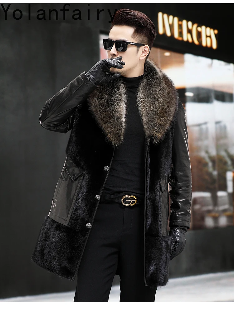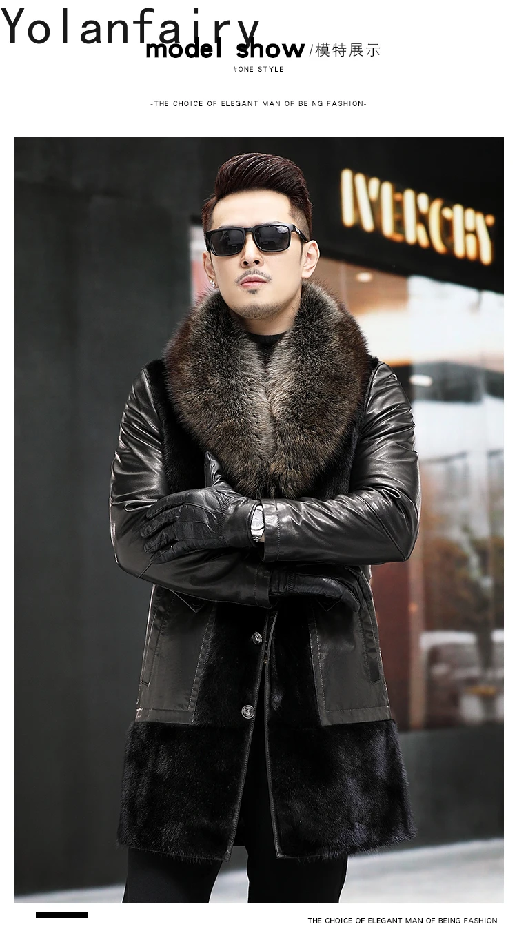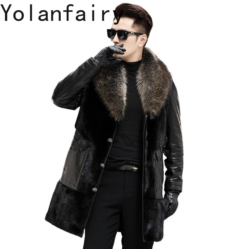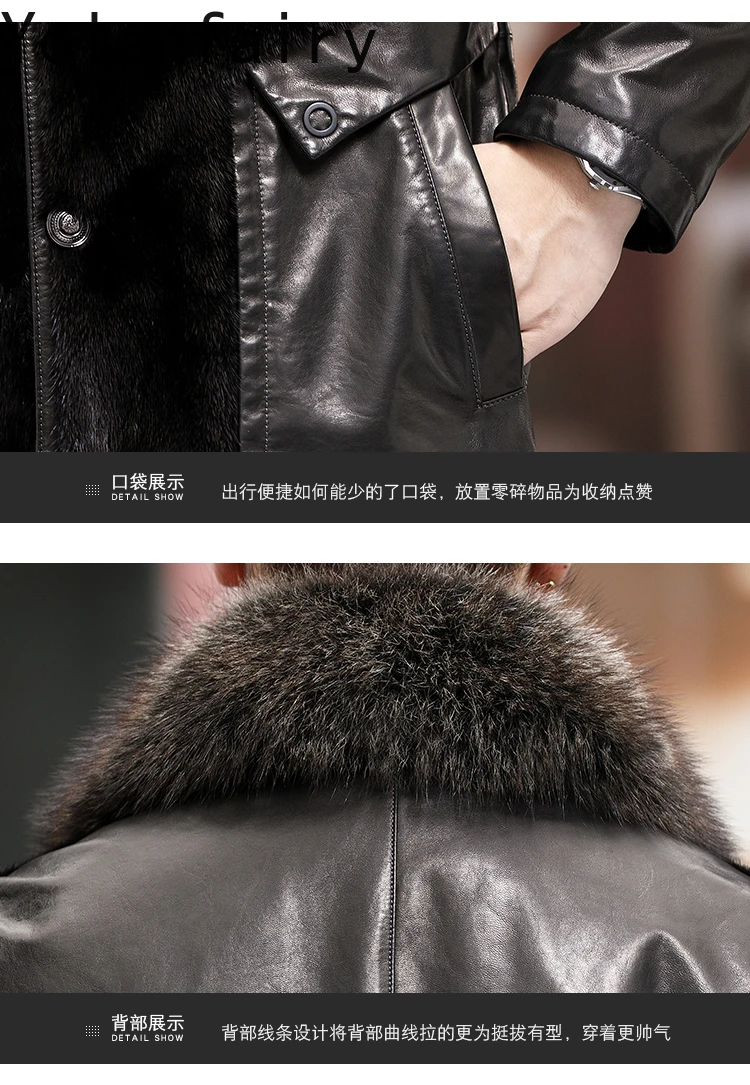 YOLANFAIRY Trend Natural Mink Real Fur Coat Man Luxury Whole Mink Spliced Genuine Goatskin Leather Jackets Warm Goose Down Coat