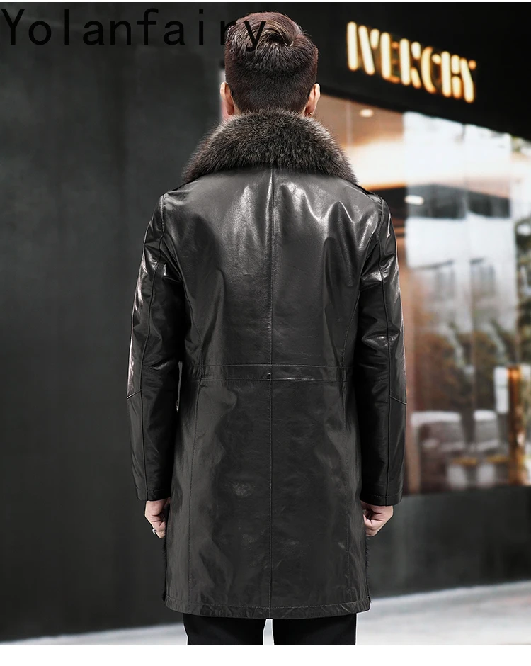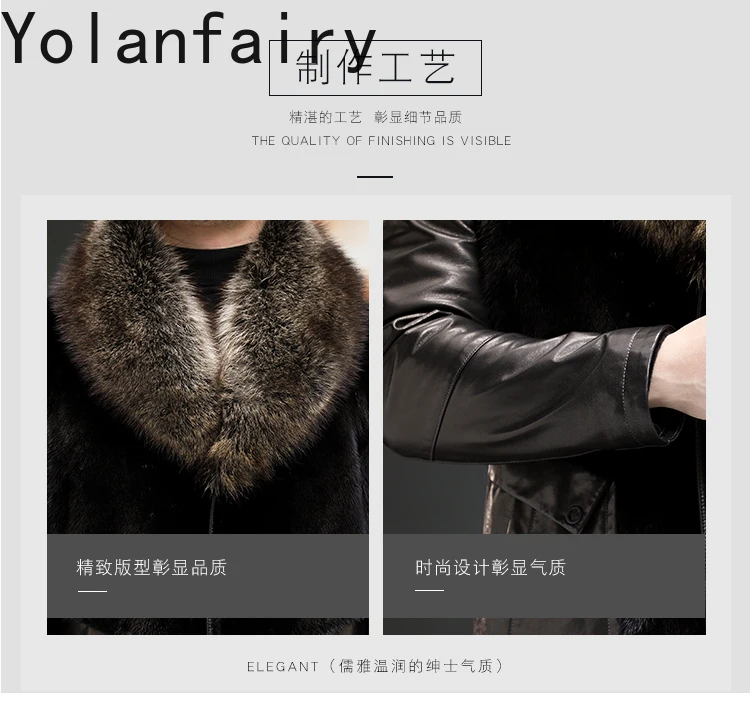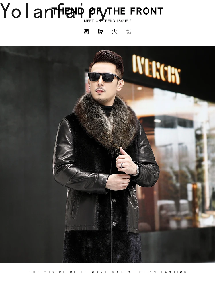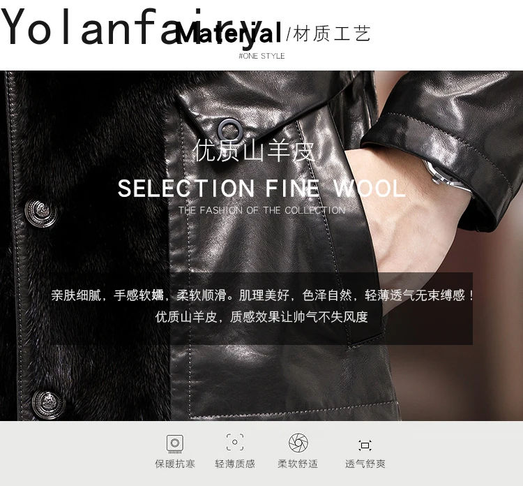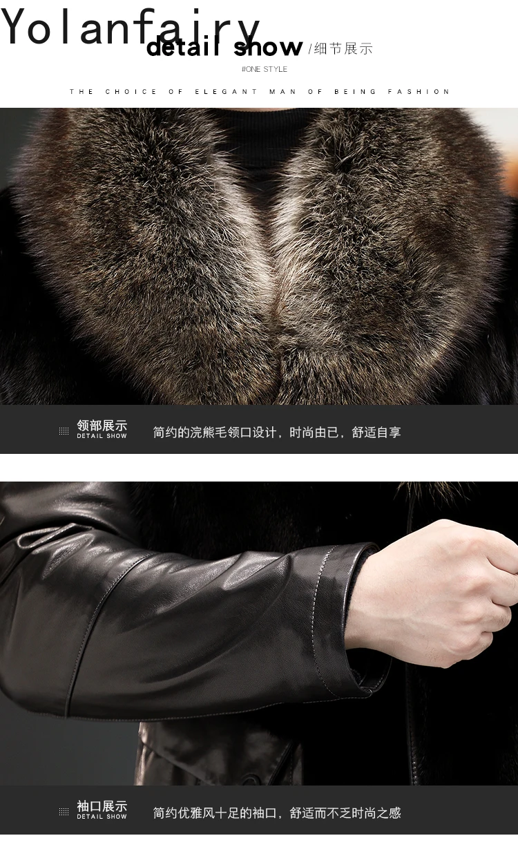 YOLANFAIRY Trend Natural Mink Real Fur Coat Man Luxury Whole Mink Spliced Genuine Goatskin Leather Jackets Warm Goose Down Coat