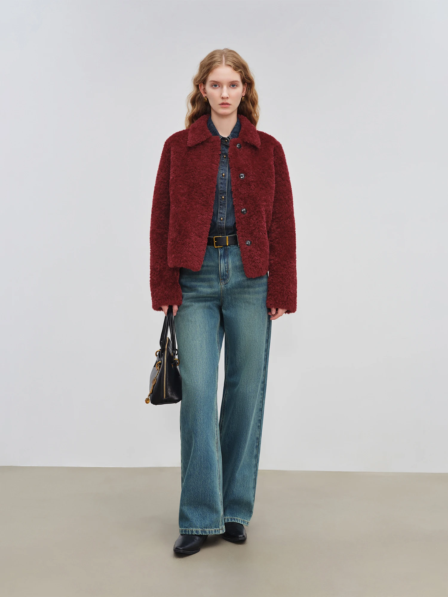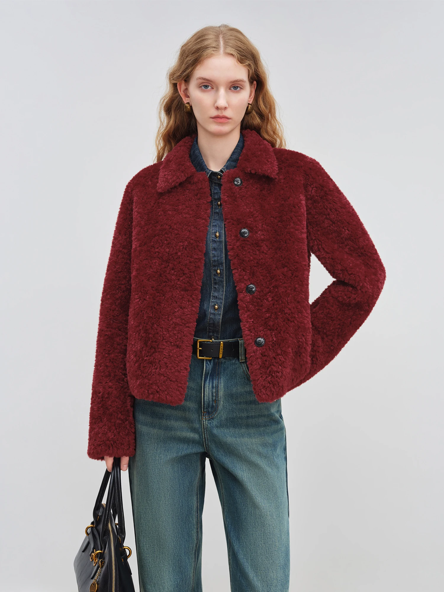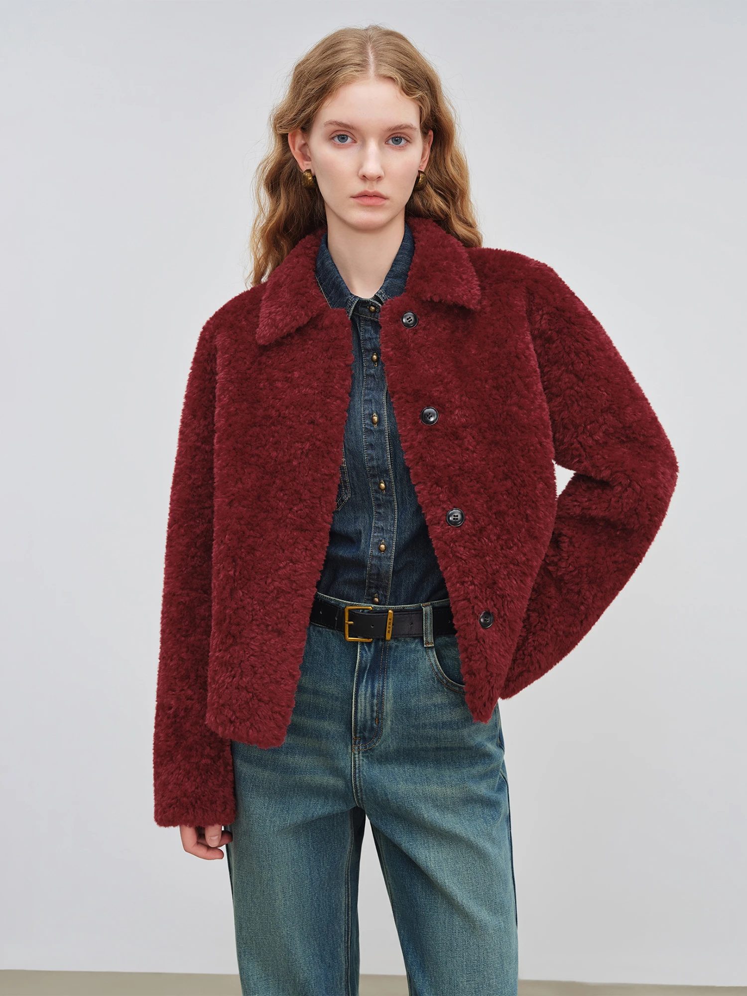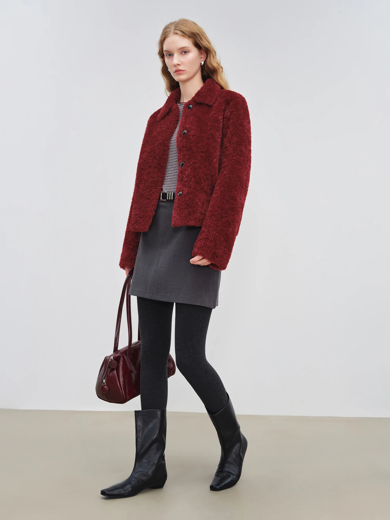 ZIQIAO 2025 Winter Women’s Short Faux Wool Fur Jacket with Lapel Collar – Plush Fleece Thermal Coat for Street Office Casual