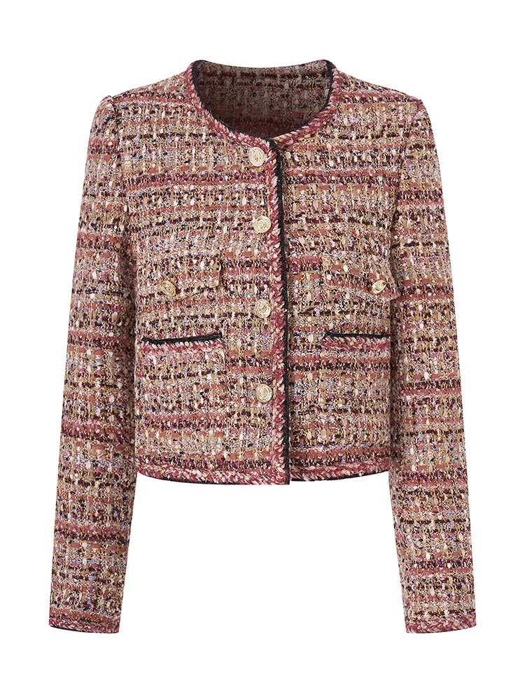 ZJYT Fashion Women’s Tweed Woolen Jackets and Coats Autumn Winter Designer Long Sleeve O Neck Vintage Outerwears Femme Veste