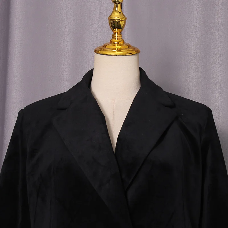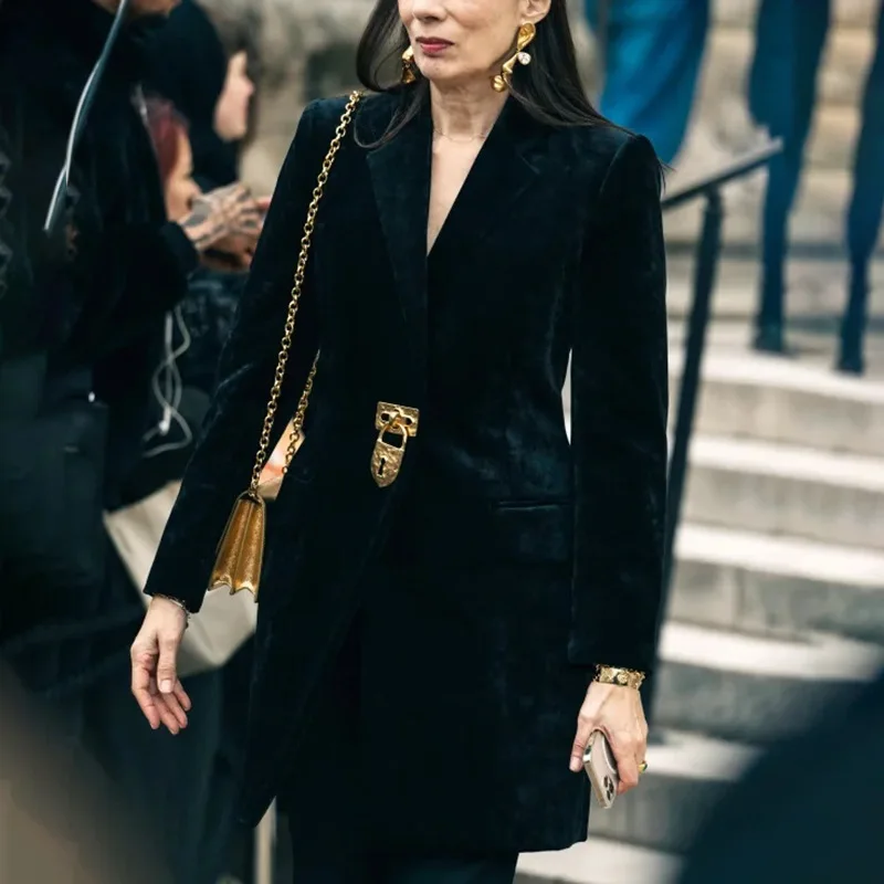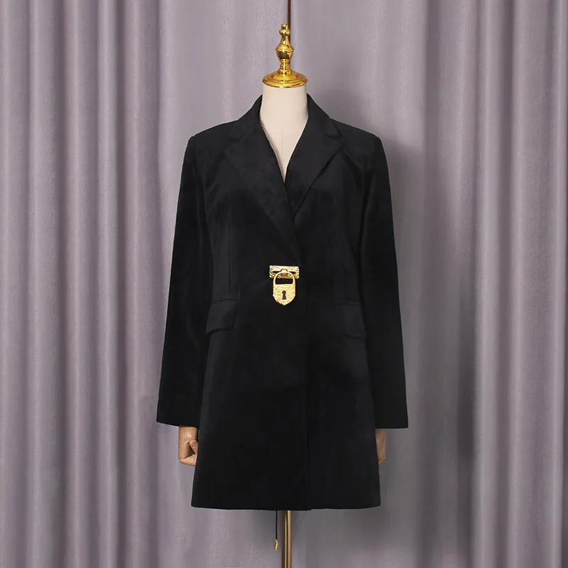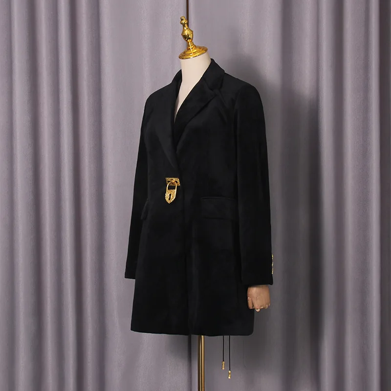 ZOCI Women Mid-length Blazer Notched Collar Back Lace-up Trendy Elegant Fashion Office Lady Female Ins Jacket 2025 Winter New