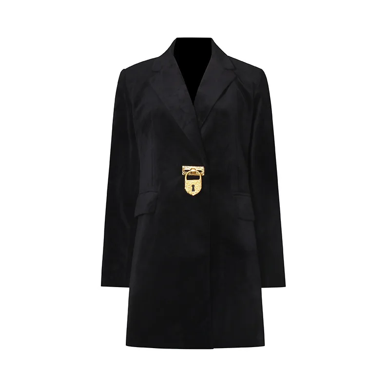 ZOCI Women Mid-length Blazer Notched Collar Back Lace-up Trendy Elegant Fashion Office Lady Female Ins Jacket 2025 Winter New
