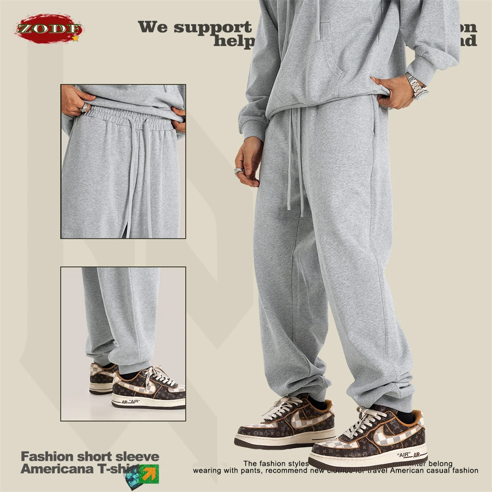 ZODF 2024 Autumn Winter Men Solid Sweatpants Women Unisex Casual Basic Loose Heavyweigh 440gsm Sport Joggers Pants HY0890