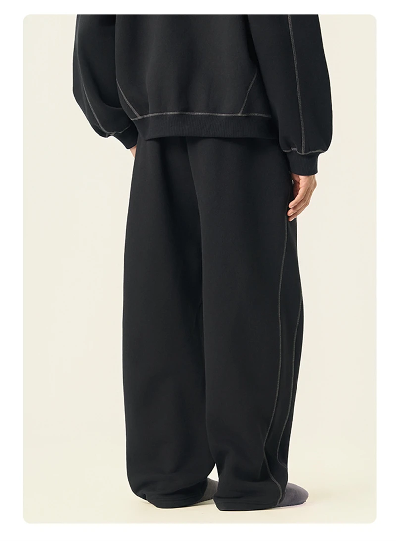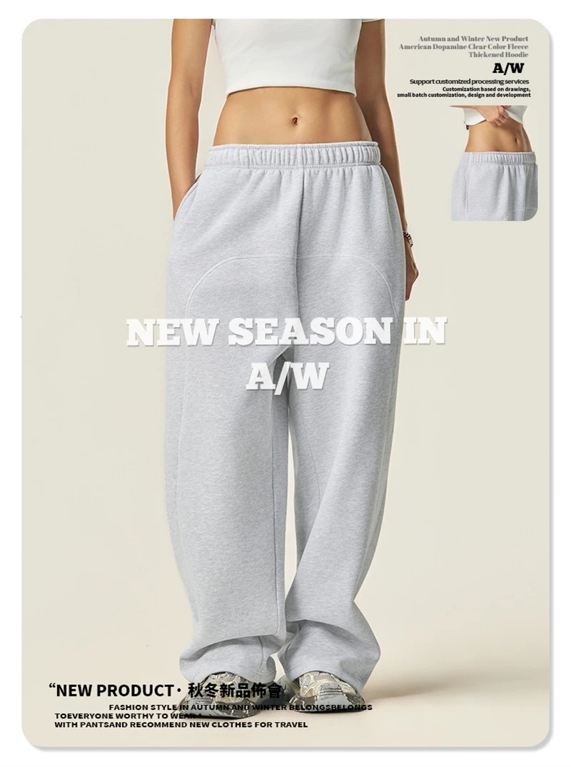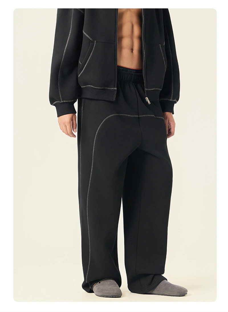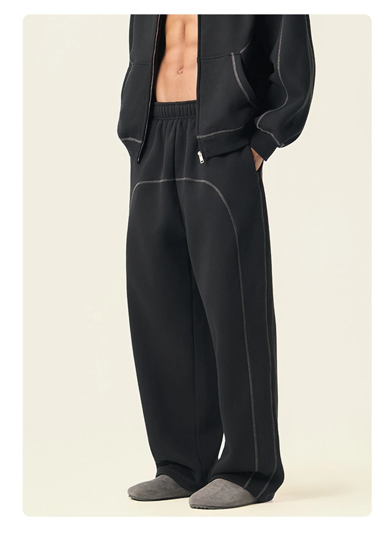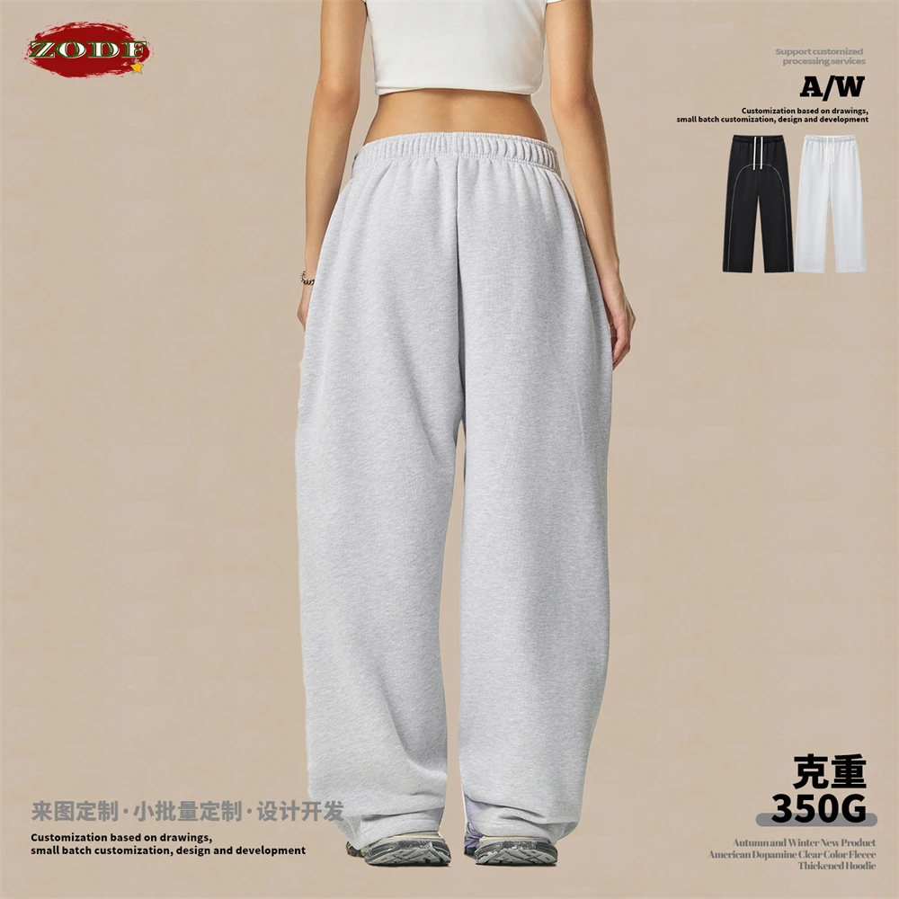 ZODF Fashion Winter Warm 350gsm Fleece Sweatpants For Men Unisex High Street Loose Fit Sport Warm Straight Pants Trousers HY0033